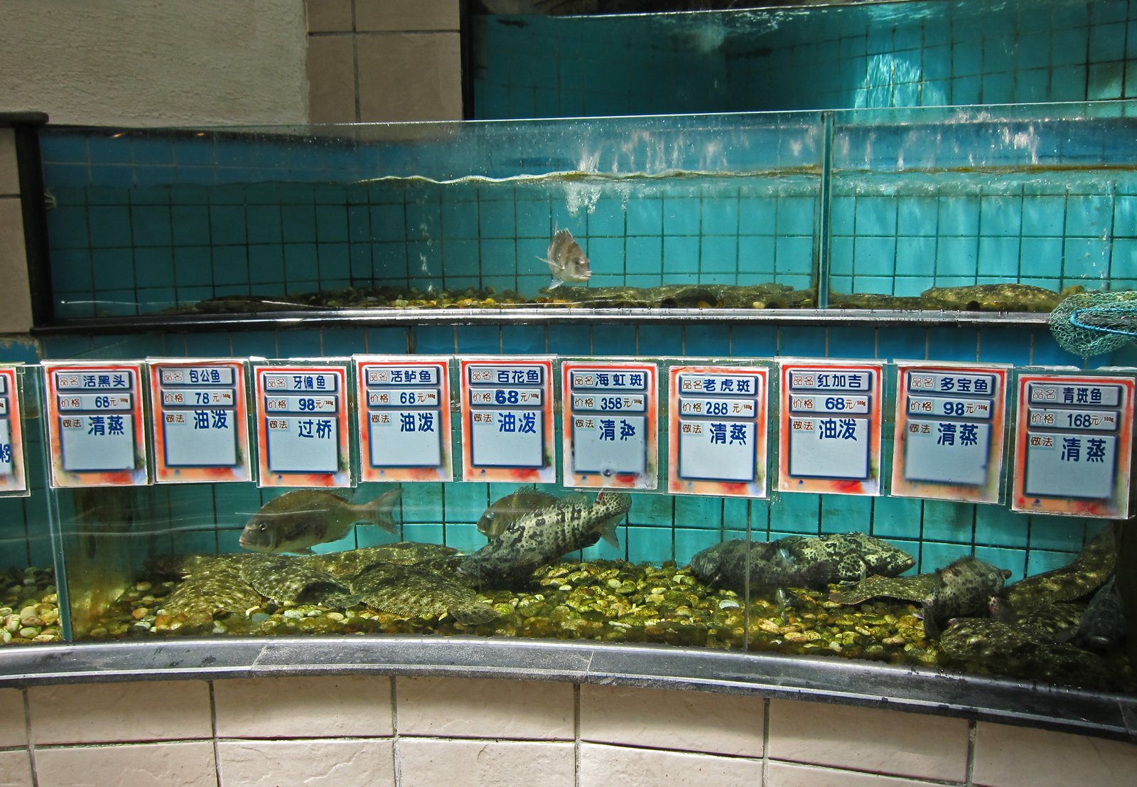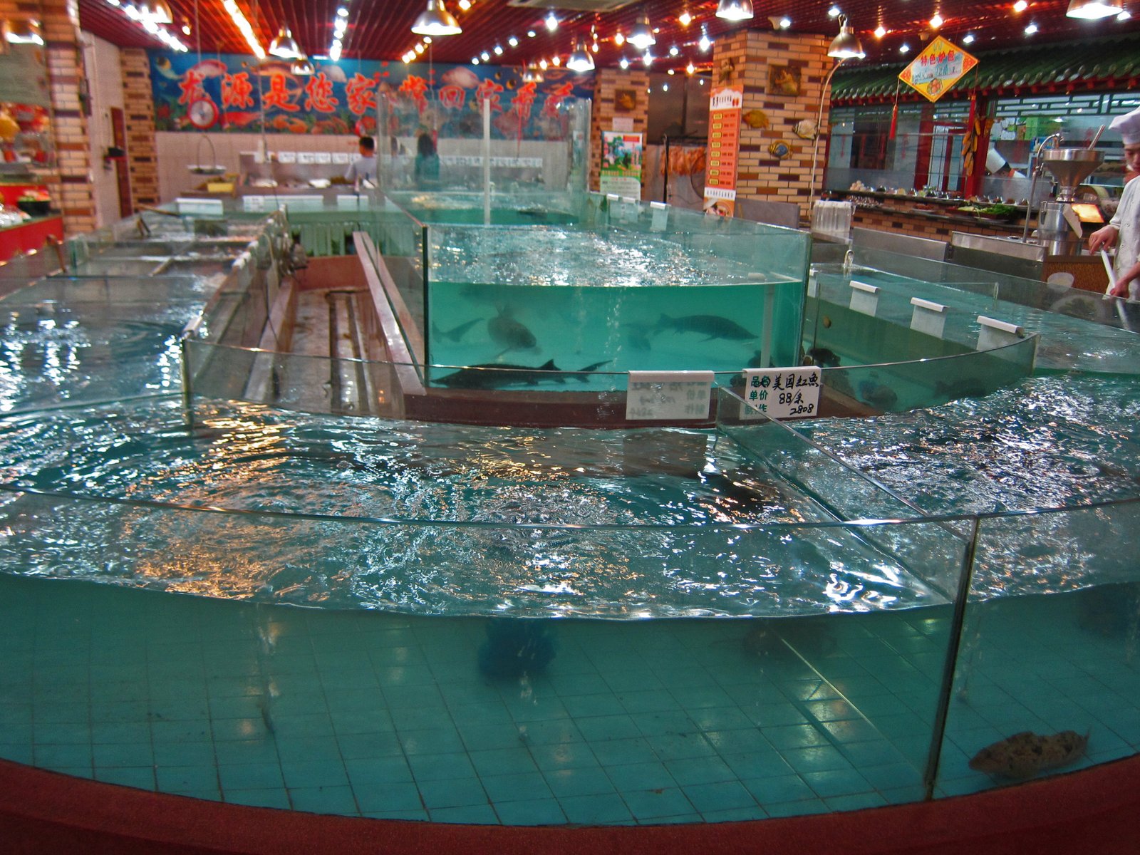Every large restaurant has tanks of live fish and seafood. Some of which are very large.