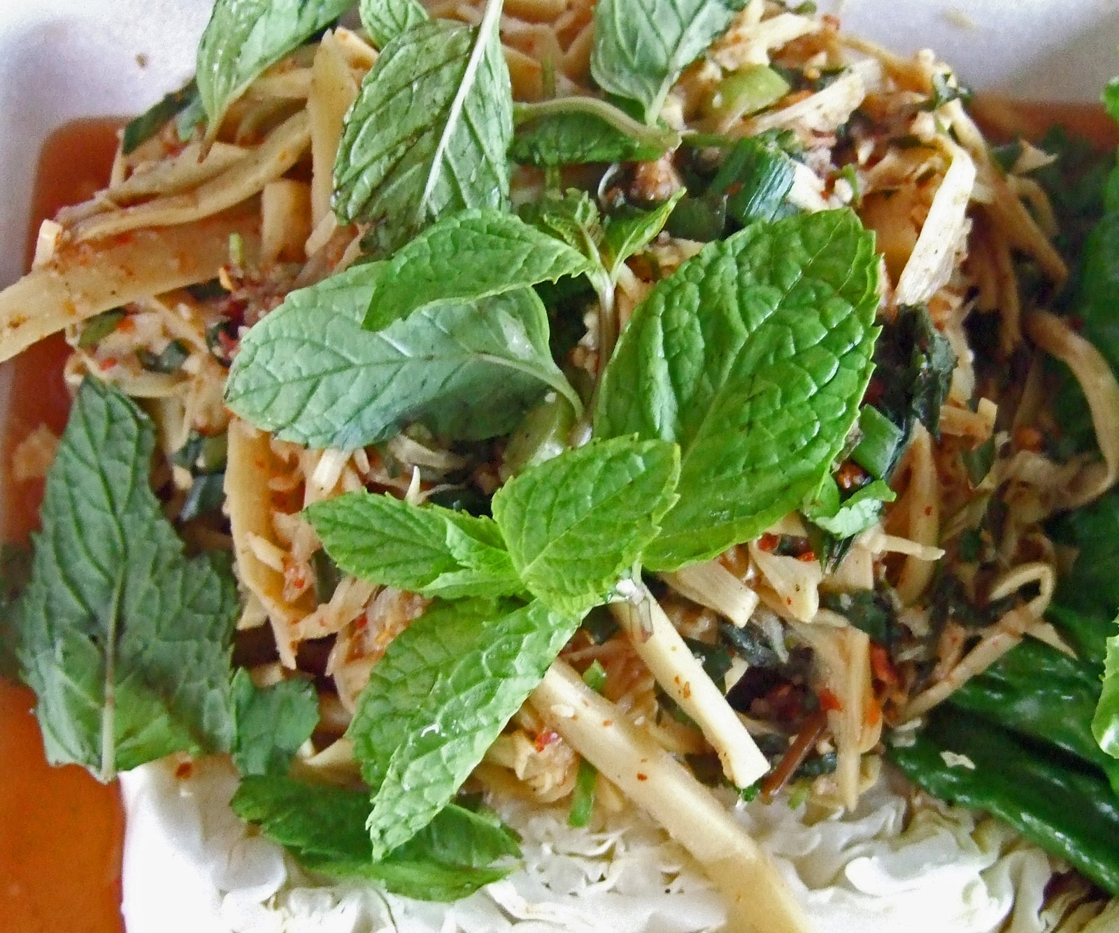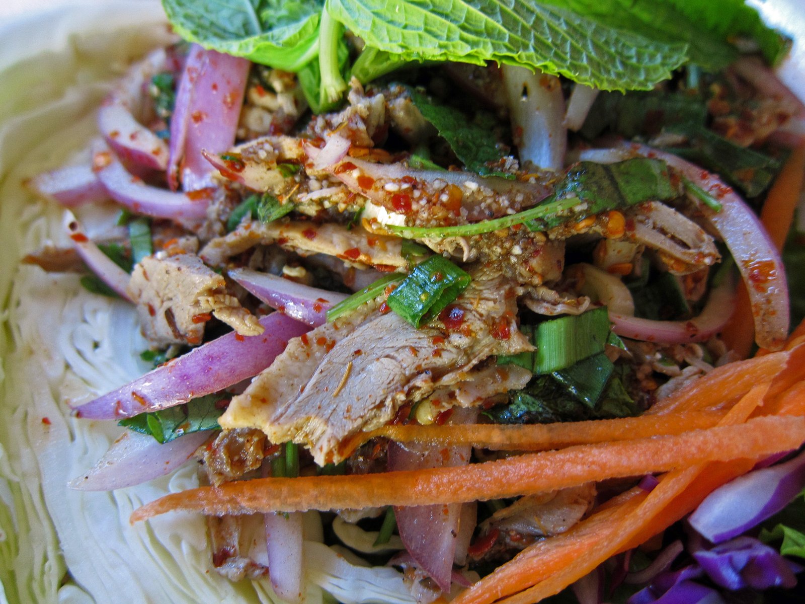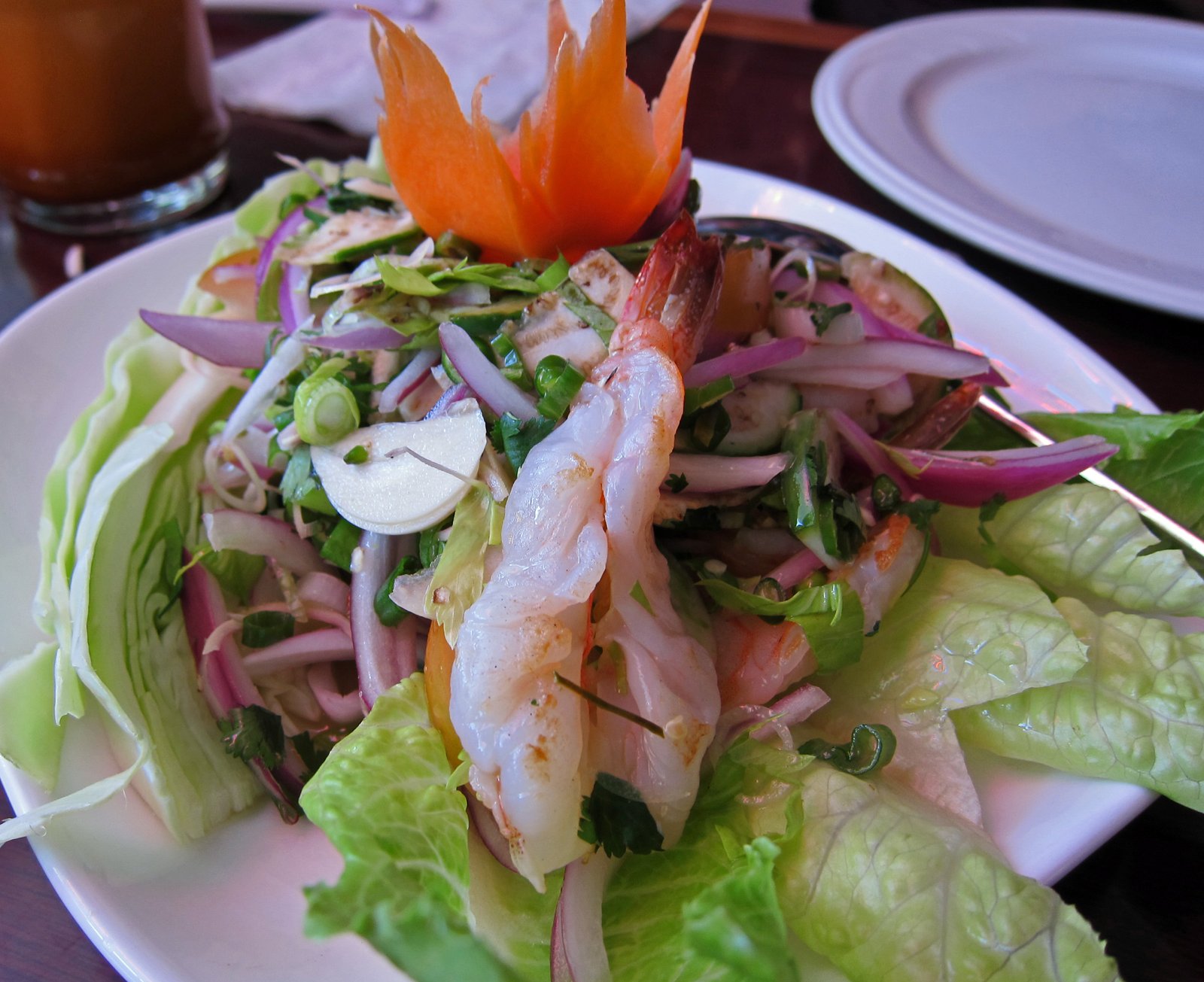 So here are the photos, starting with the Plaa Shrimp, a quickly seared shrimp salad, with a familiar, bracing, yet refreshing fish sauce based dressing. Just as good as the first time we had it.