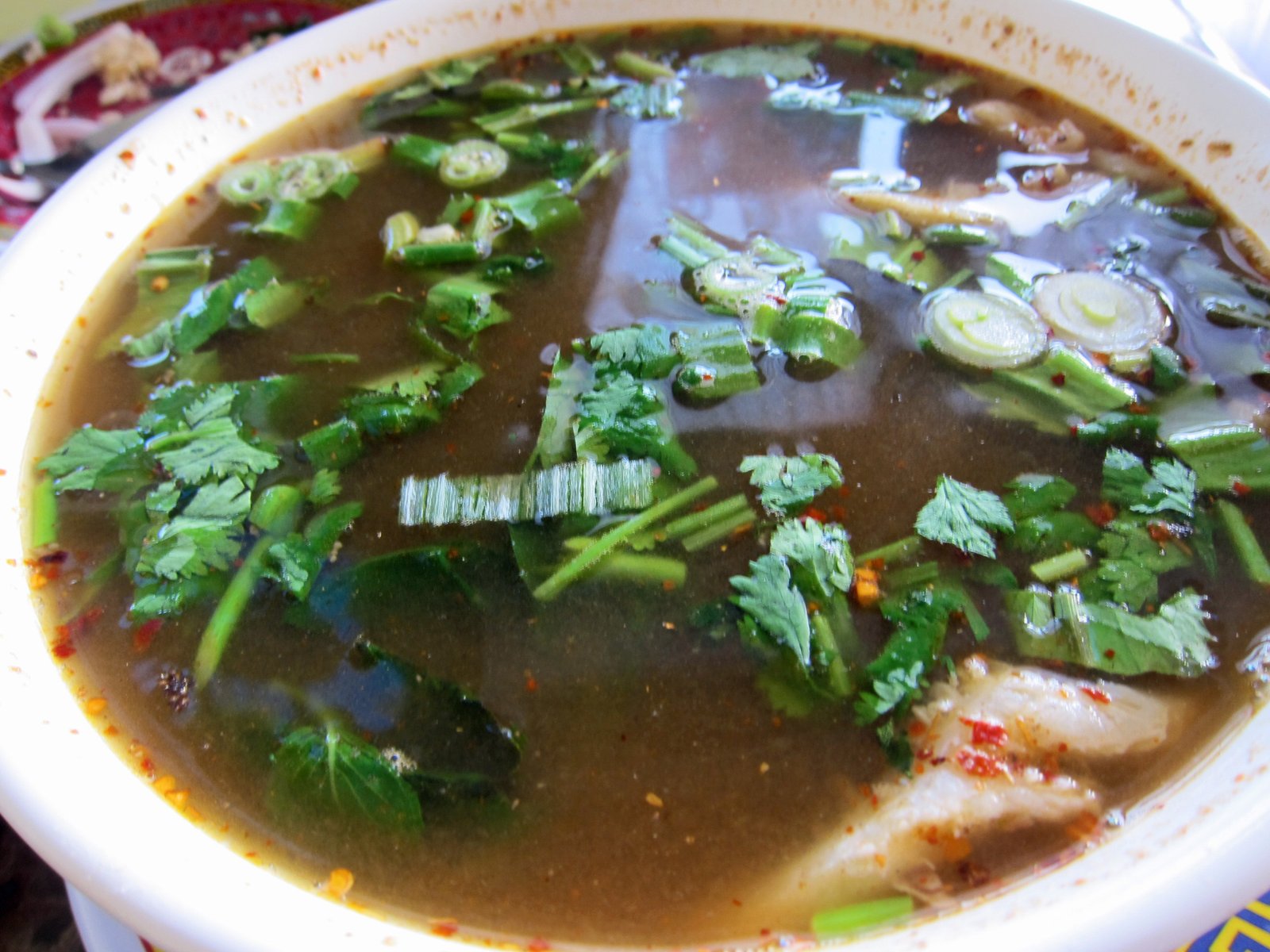This is one of those cases where citrus enhances the heat, pegging it up a few notches. The soup is chocked full of tendon and meat cuts, with some tripe and other offal thrown in for good measure. I'd recommending sharing this with a few people as it can get rather tedious eating the whole darn bowl yourself. A small bowl or two is just perfect.