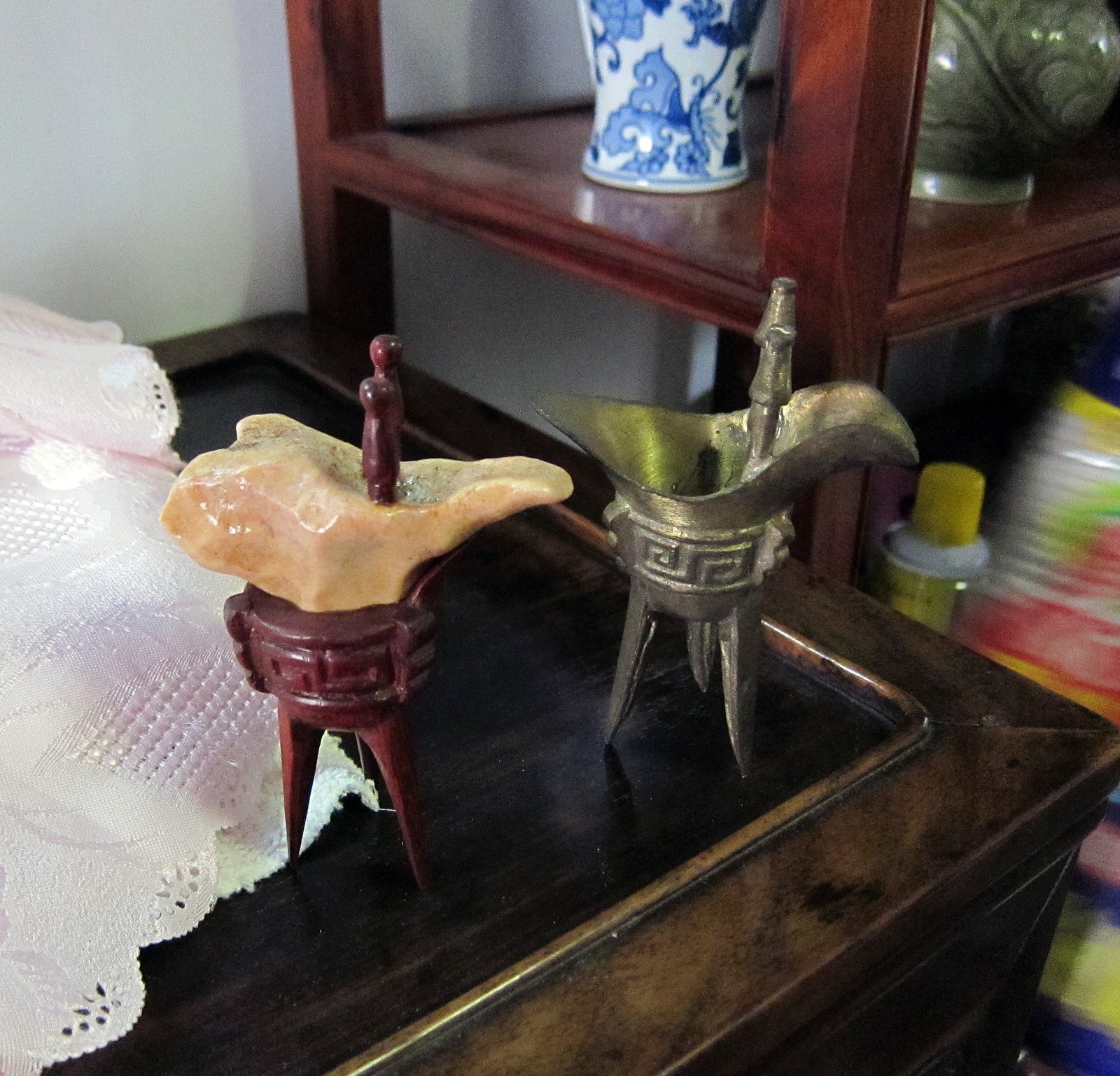 Sixth Uncle, the artistic one, gave us a "tour" of sorts of his collection of various works. One of his many talents is woodworking, which is displayed through out the condo.