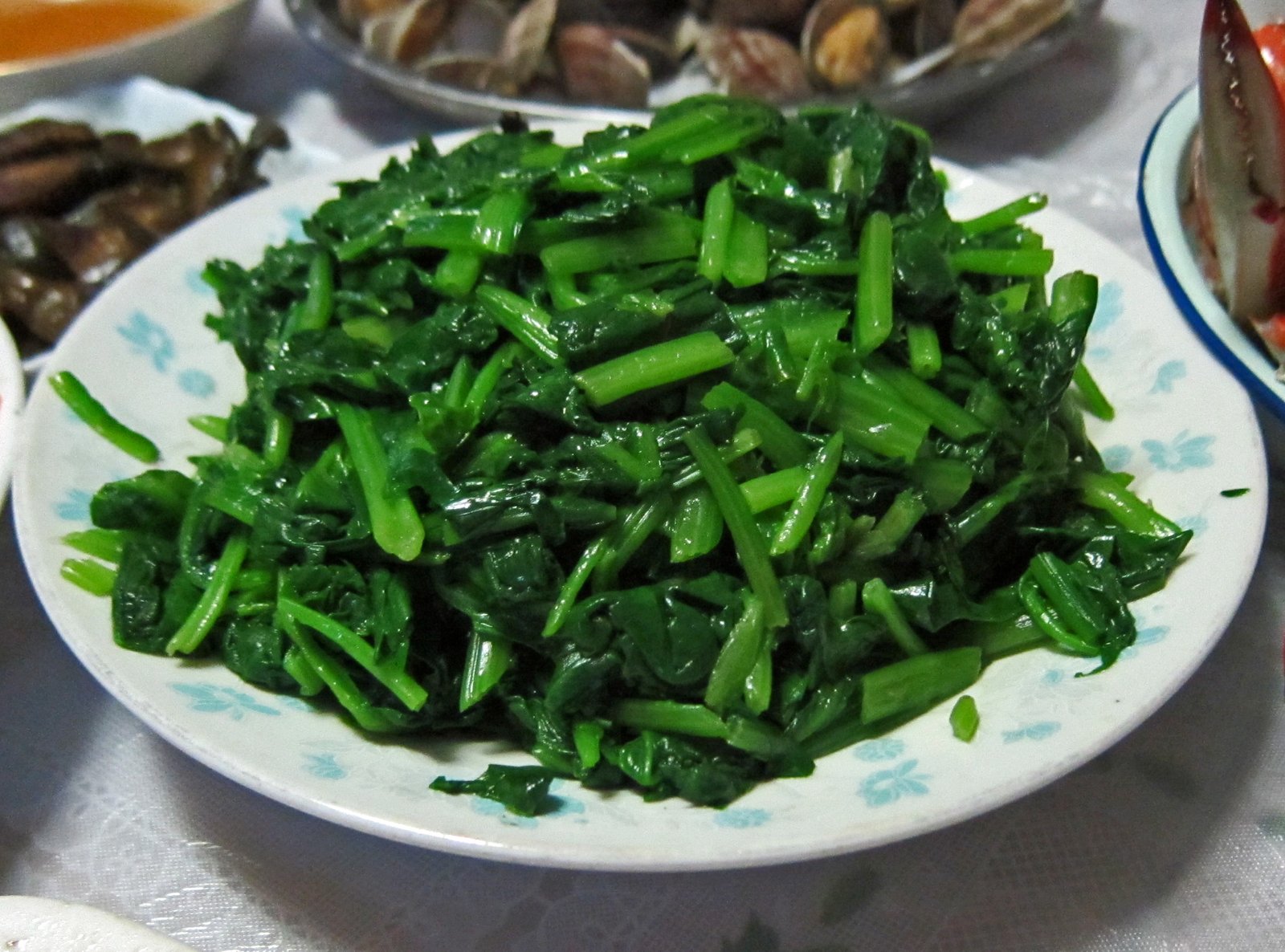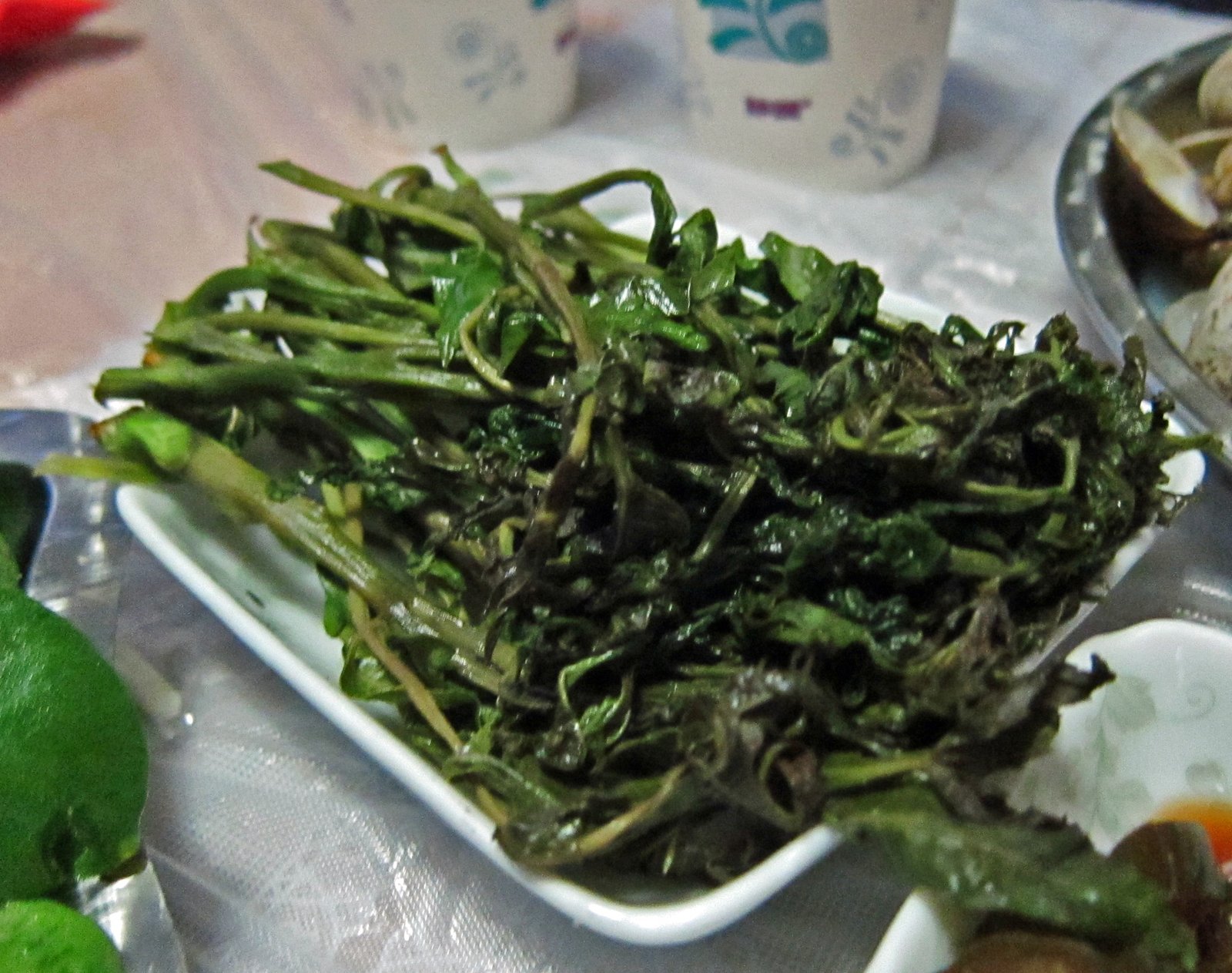 I thought it was some kind of purslane, but before doing this post, I the Missus sent out an email to Her Mom and Dad, and pretty soon the answers came pouring in. From Fifth Aunt, and Sixth Aunt's Daughter, I found out this is Tian Qi(田七)or Shan Qi(三七), also called Pseudo-Ginseng or Notoginseng. It is supposed to be an amazing blood remedy. In fact, while I was doing a bit of research, read that during the Vietnam War, Vietnamese Soldiers carried the powder of this herb with them as a field treatment for gunshot wounds until they got real medical care. I'm not sure if that's true or not, but it does make for a great story.
