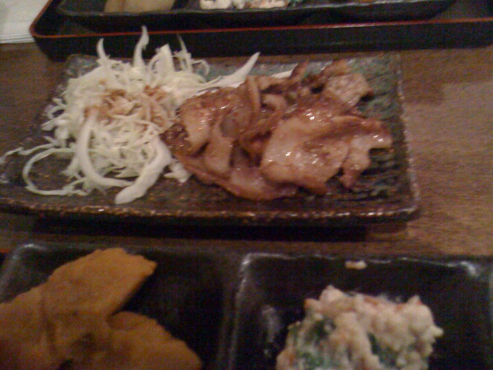 For an additional $3.50, The Mister chose "ginger pork", which, as you can see, is pork belly, which was cooked in a light ginger sauce and served with the sliced cabbage topped with a kind of ponzu sauce.