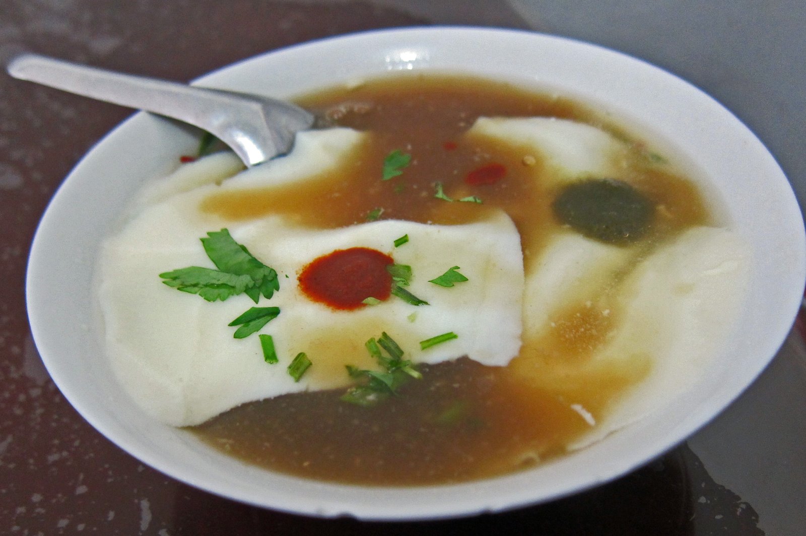 Along with bowls of a clear broth, which I'm assuming was donkey soup. It was fairly bland.