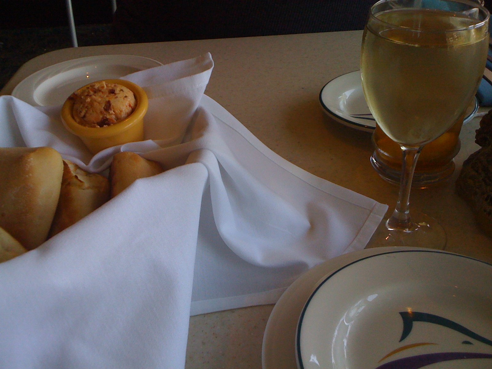 Of course fresh ciabatta rolls and sun dried tomato butter is brought out (the soft, warm bread tastes better with the dip than the dried bread slices shown).