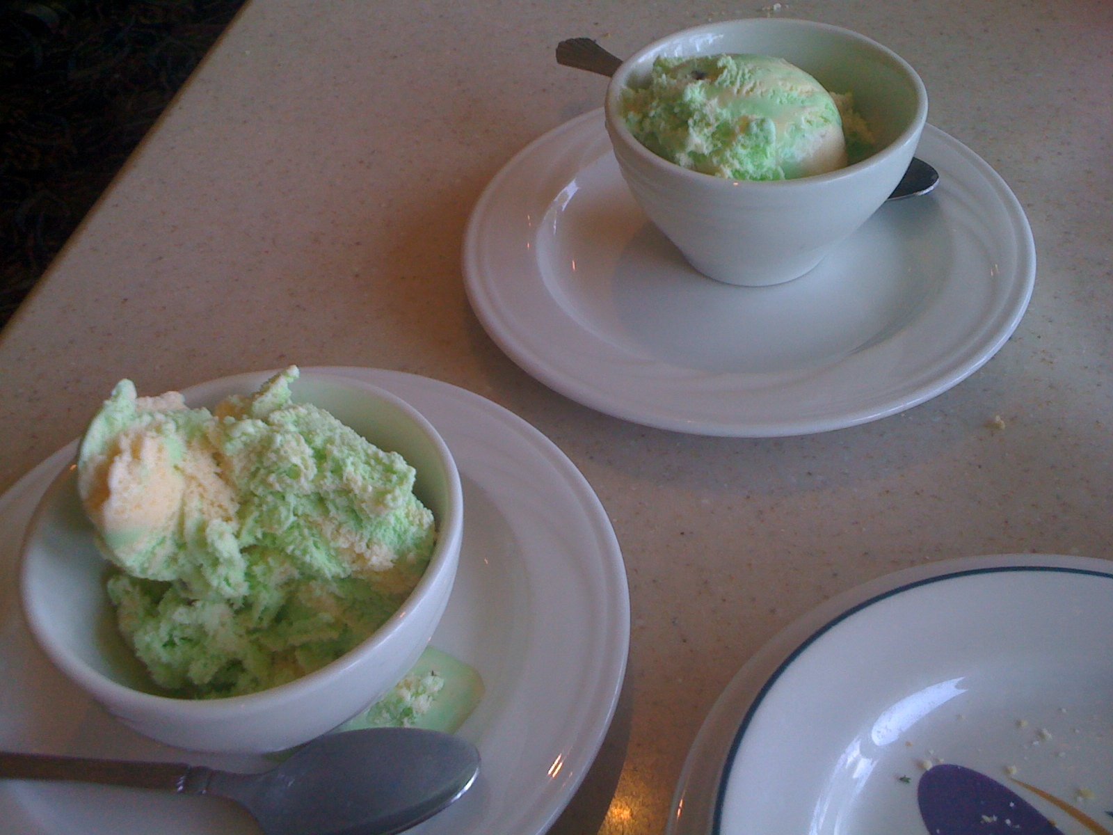 Dessert could have been a shared strawberry shortcake or, this. We each got a cup of the best spumoni ice cream I have ever had. Our waitress told us that Dreyers makes it exclusively for Anthony's. Mostly pistachio ice cream, with whole pistachios and vanilla whipped cream…oh there were some cherries and no chocolate. This was *so* good and refreshing. Our table was by the window and had this lovely view of the lake. We had a very nice afternoon.