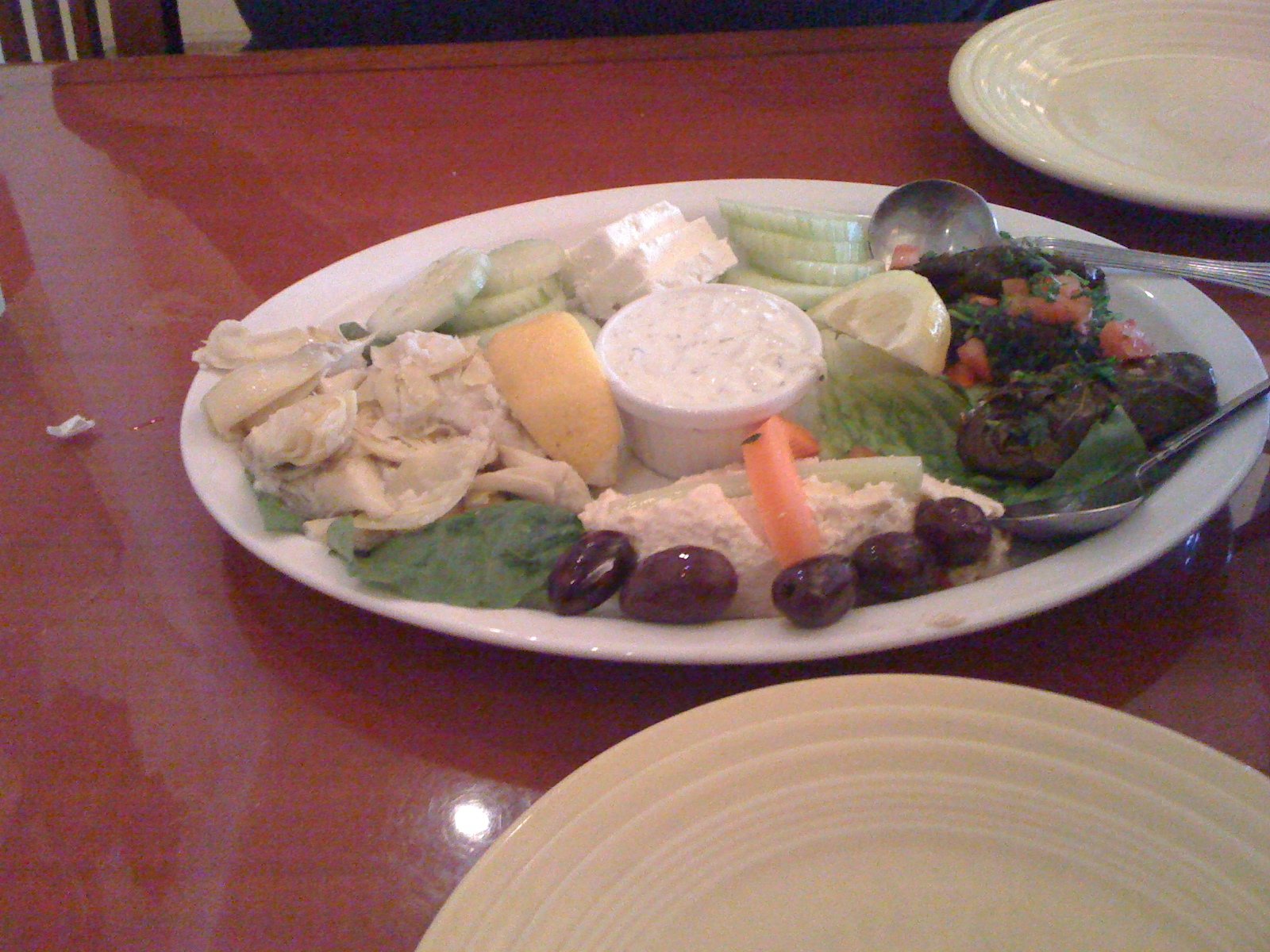 We decided to try the Mezedakia ($14.49) A two part appetizer platter…