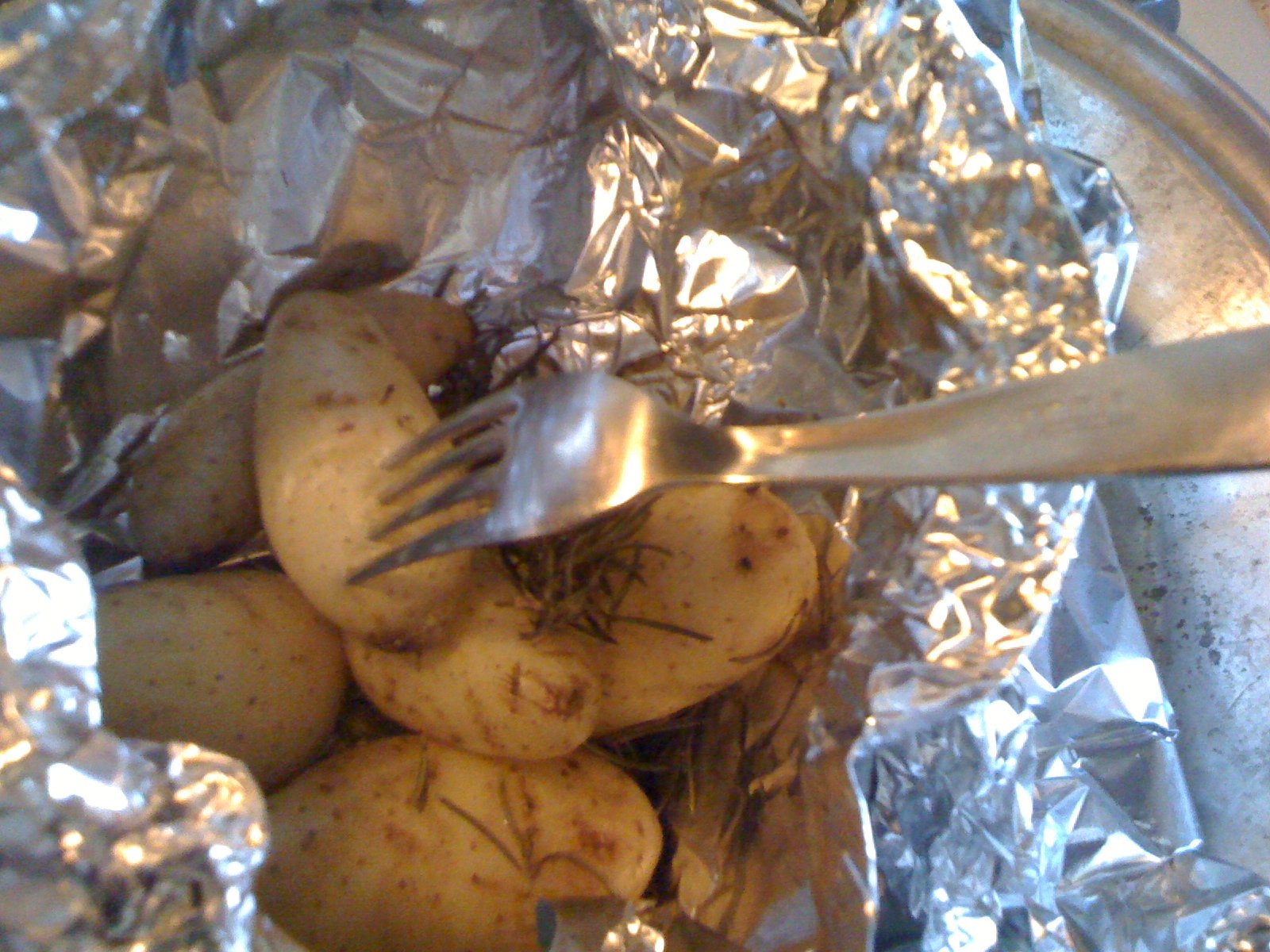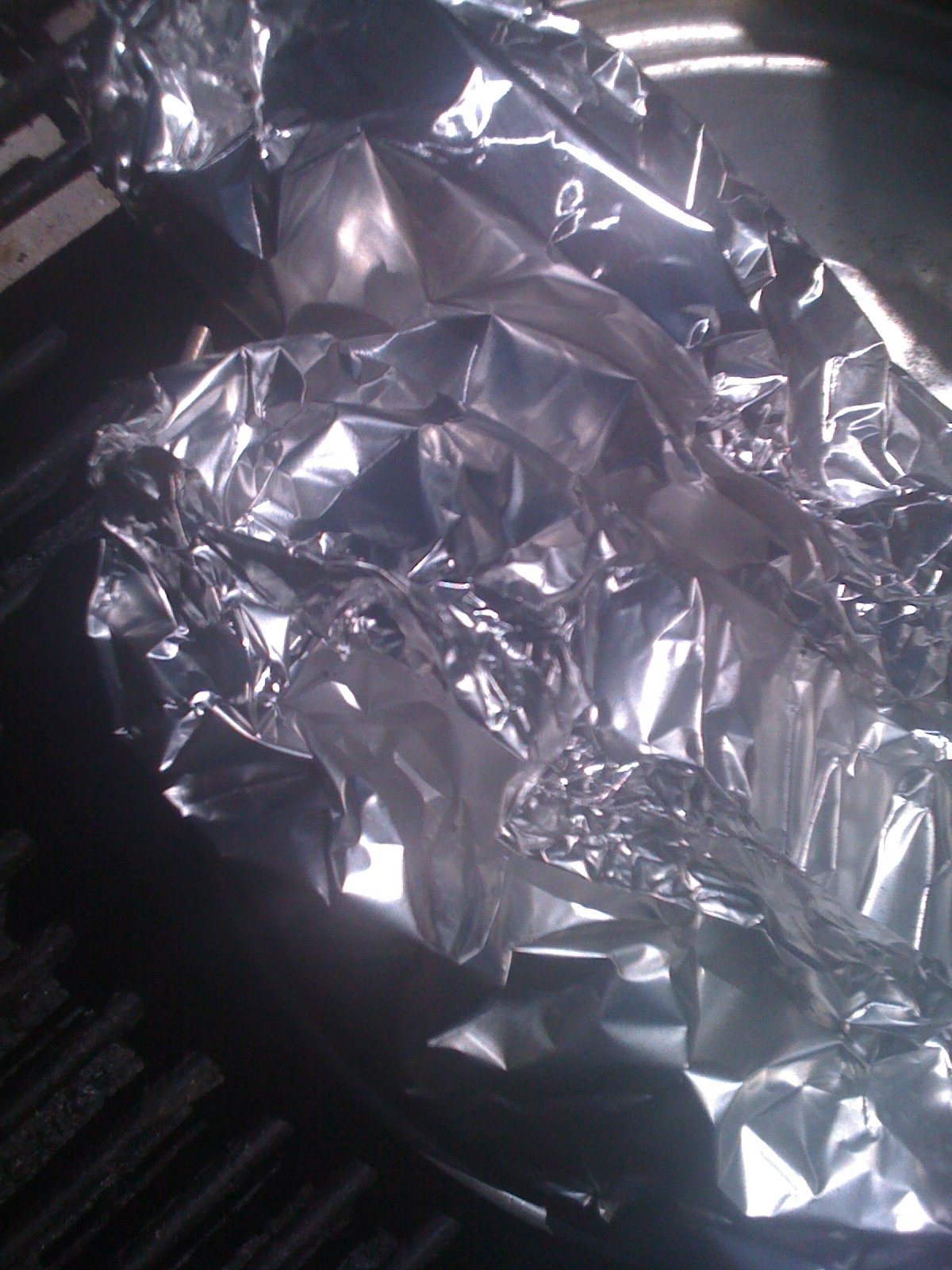 Here are both packets on the center grill.  The potatoes were on about 8 minutes before I put the fish packet in the center.  I turned the heat on high on the two sides of the grill; there is no direct heat under the packets. It is kind of just an oven, without turning on the one inside my non-air conditioned home. 033