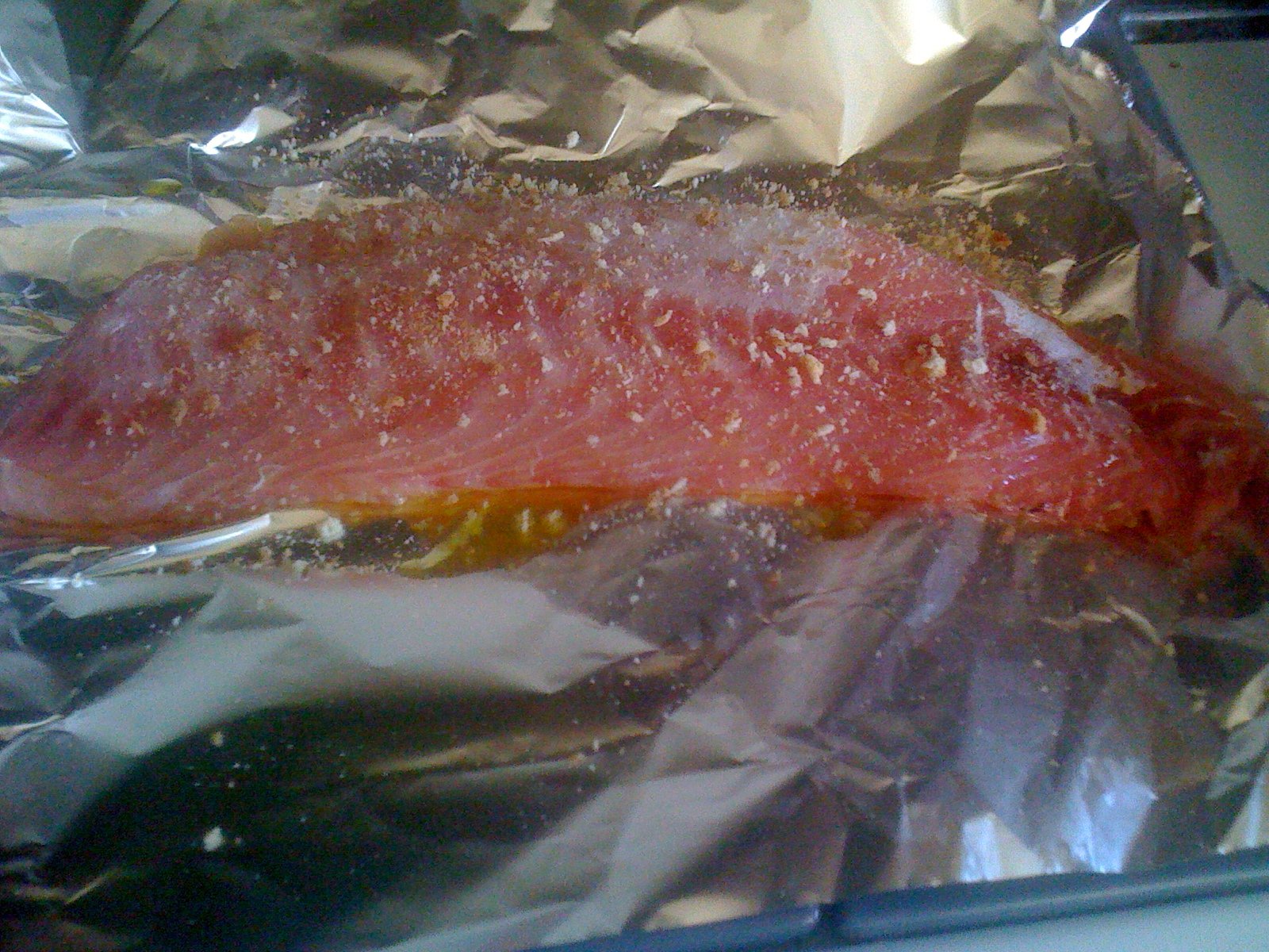 The Whitefish is so very fresh that I just want to taste it and not other flavors, so I coated it with olive oil and some dry slightly seasoned breadcrumbs.  (I dry leftover pieces of bread and put some Herbes de Provence in the container once I crush the dry bread). Fold the foil tight- again, steam will cook the fish.022