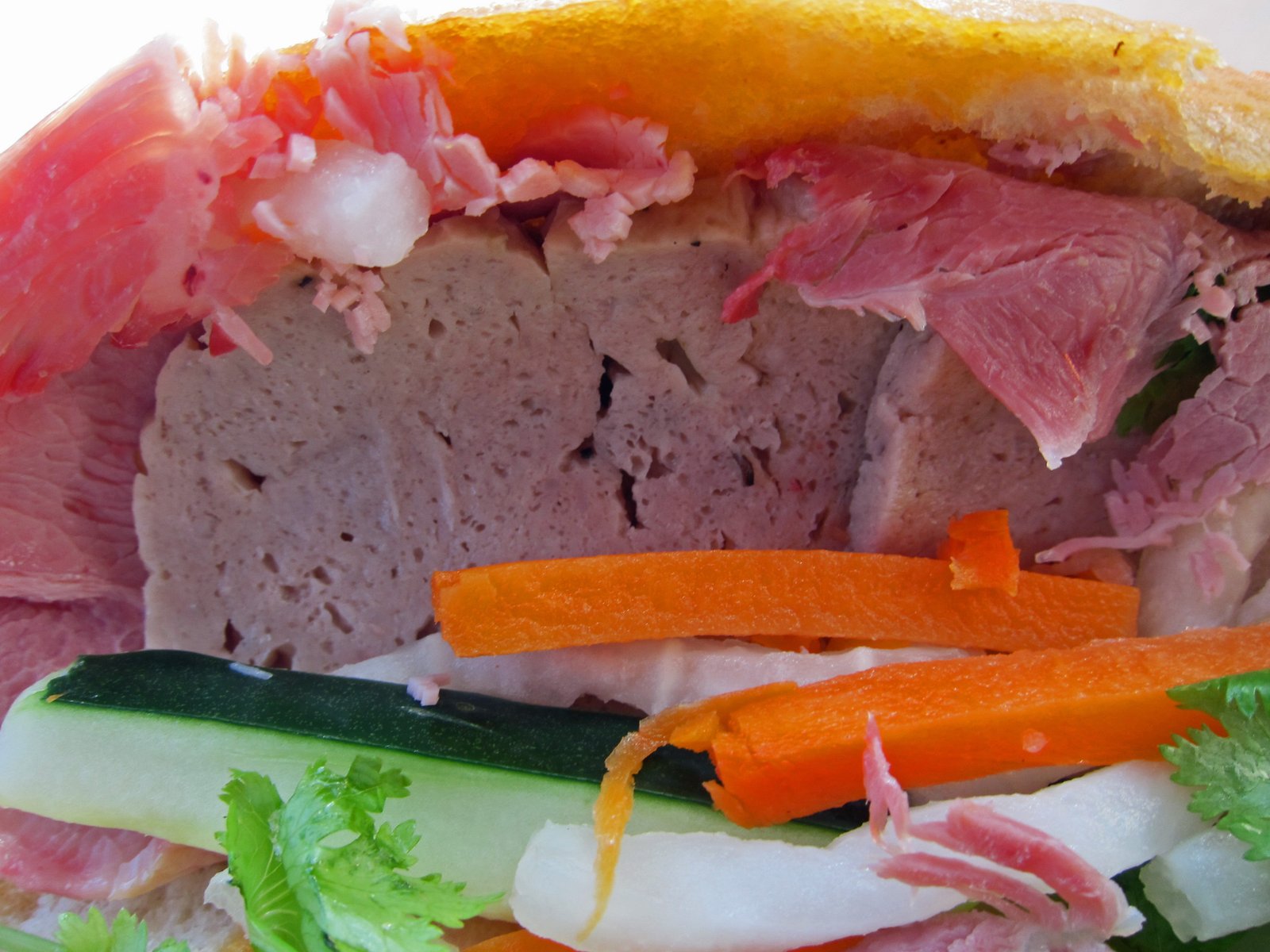 Honestly, this sandwich had potential. I enjoy the long baguette more than the usual Banh Mi, but this wasn't toasted enough. In fact it was kinda cold, even though I bought this last, and ate it first. It was just not crustly/flakey enough for me.