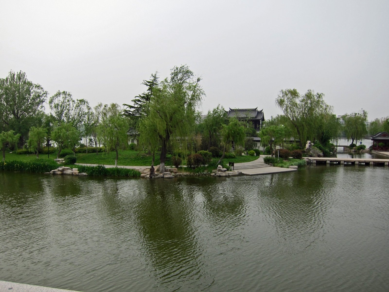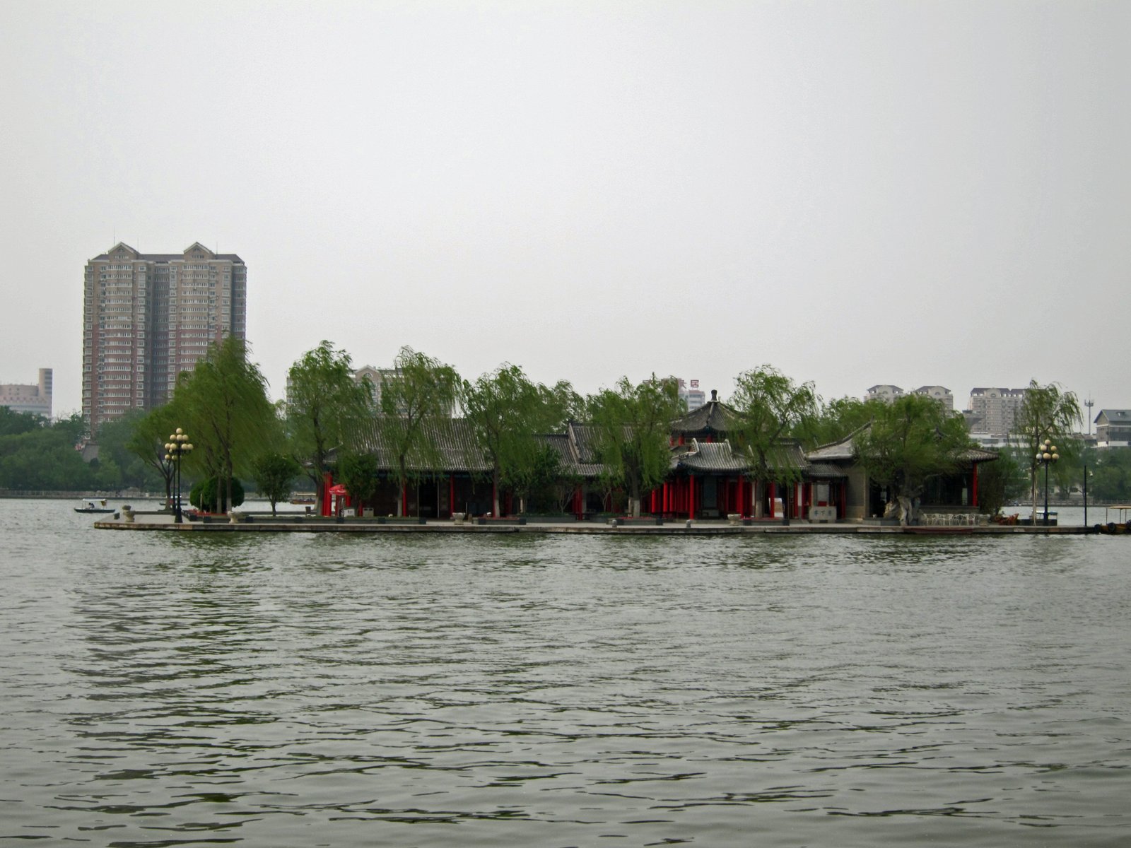 There are numerous islands, pavilions, and temples, including the largest Taoist temple in Jinan.