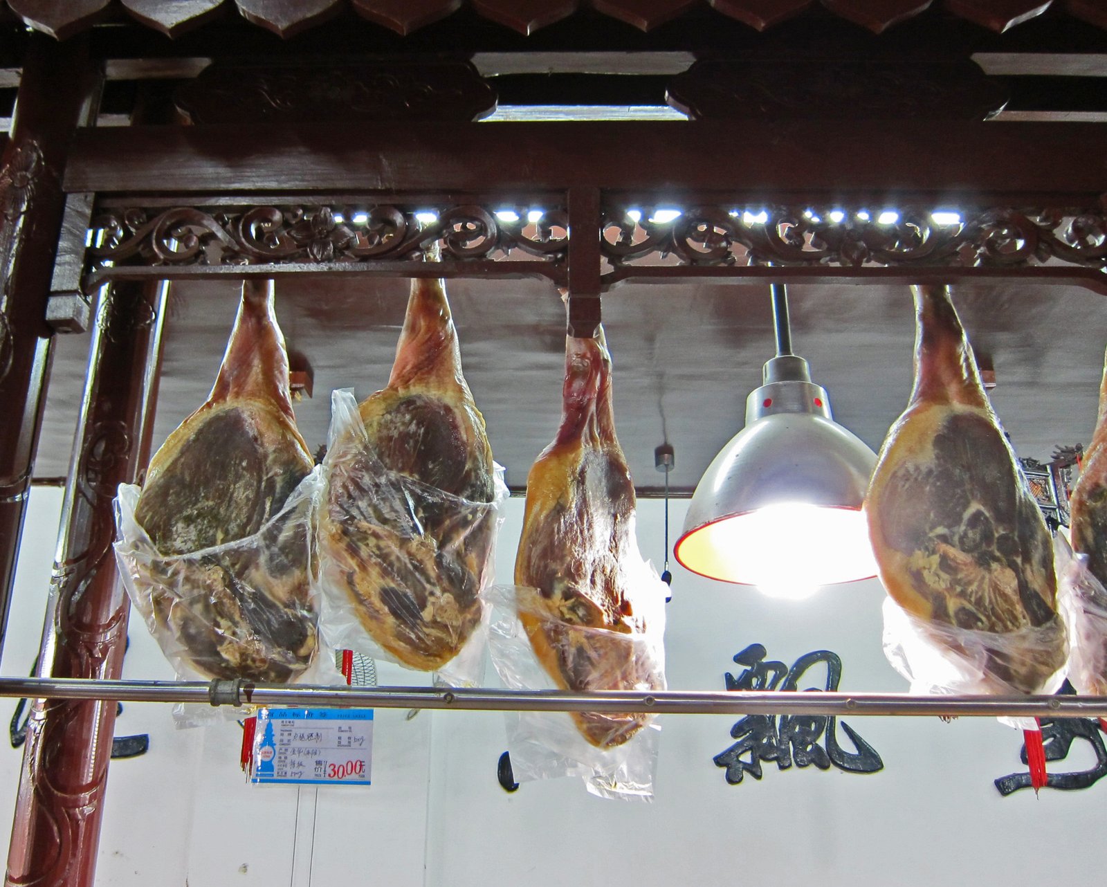 Even though most of the shops were closed, the ones open were the shops selling the very popular Jinhua Ham.