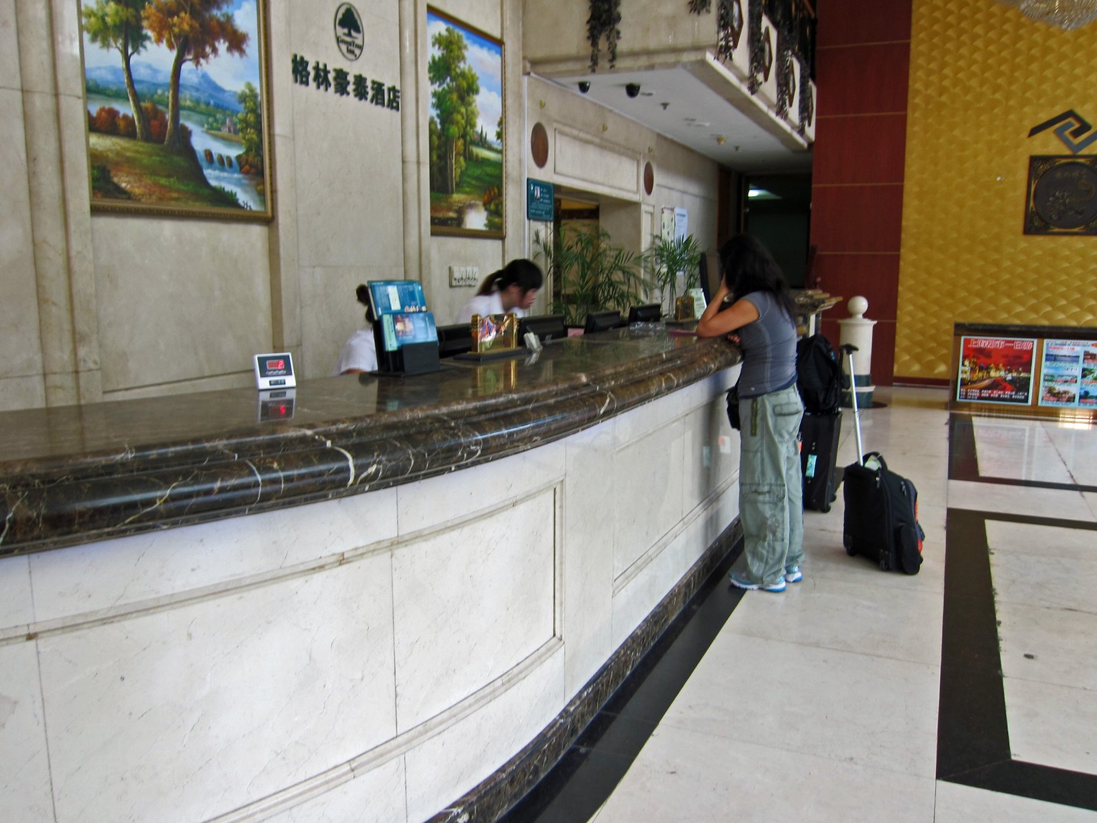 We arrived at Xiaoshan International Airport with no real plan in mind. No hotel, no way from the airport, and against what we usually do, no maps. We were just going to wing it. The Missus found us a shuttle bus from the airport into Hangzhou, and while on the bus, the Missus spoke to the inevitable bus attendant, who also sold tours, and of course, had a large list of hotels. We were told of a decent low-mid range hotel, given her card, and told we would get a certain rate. Of course when we arrived at the front desk, the very, very, young woman, had no idea what we were talking about, and quoted us rates 30% more than what we were quoted. The Missus was now in Her element, this was a challenge, and of course She met the challenge head on…… and of course we got the rate we wanted.