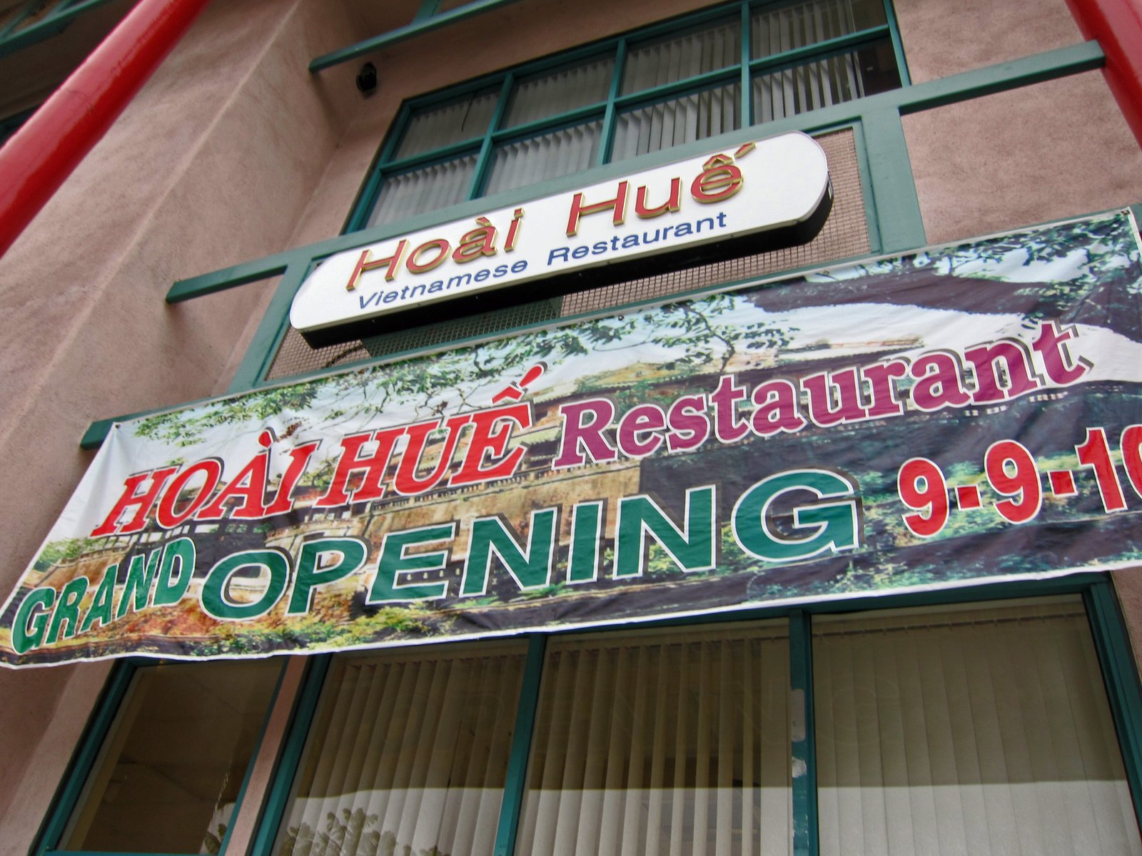 Over a month ago, I mentioned that Hoai Hue Restaurant would be opening in the former Huynh Hoa Tuu location. A quick check down the street confirmed that they closed up their old shop, and had moved to larger and more pretty digs. Truth be told, I was going to miss having people look for Hung's Tattoo Parlor and the Alcoholics Anonymous to find the place……