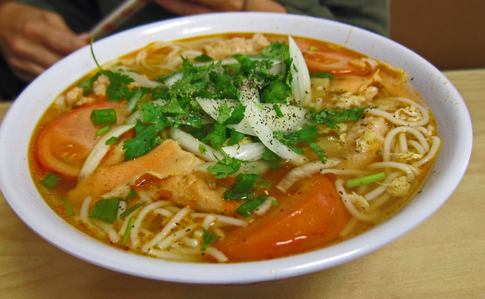 The menu here reflects some regional differences in the names of a couple of dishes. For instance, what we usually call Bun Rieu is Bun Tom Cua. Still, there's no mistaking the freshness of the veggies that arrive in advance of your soup.