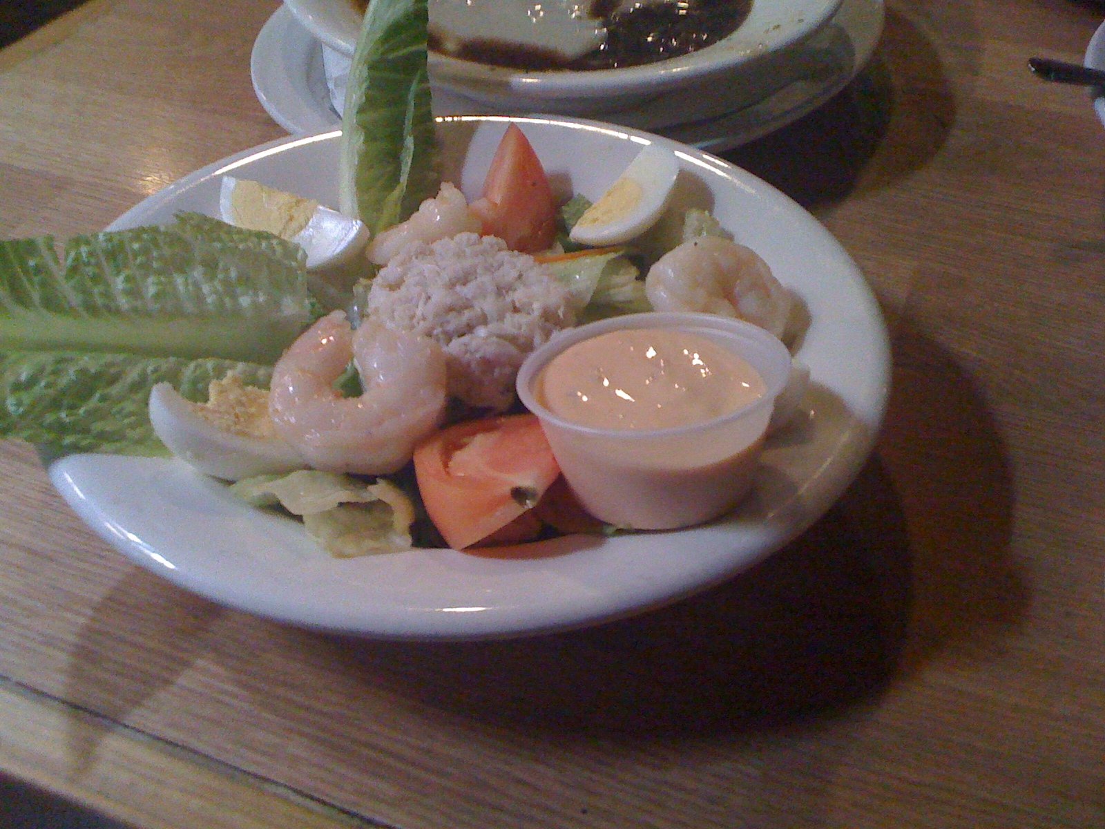 We ordered the Seafood Louie salad ($10.50), told our waitress we were going to share and it was brought out on two plates (no extra charge). ..so this is a photo of a half salad. The shrimp are very large and flavorful, the crab meat was also very fresh and tasted good, without the need to add condiments.
