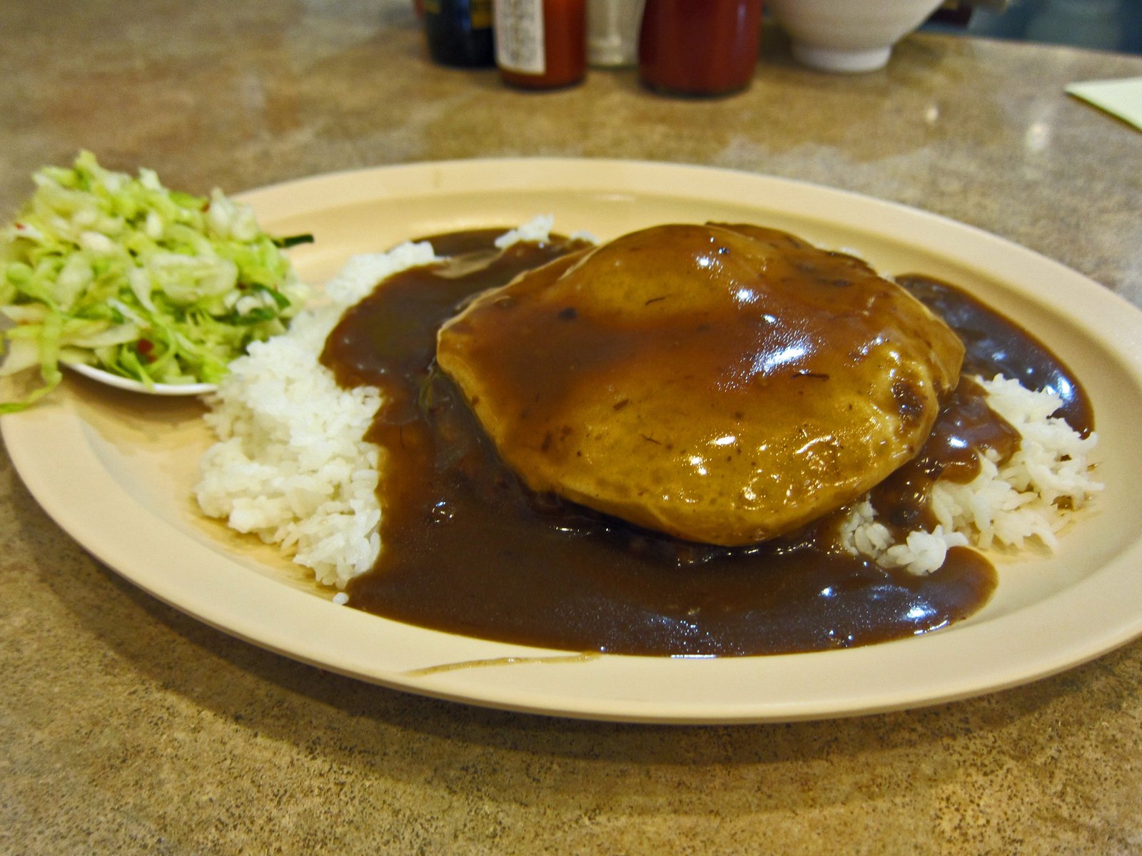 I like that they didn't ask me how I wanted my egg, it was done easy-over. The gravy was very dark, and there were shreds of what seemed like roast beef in it. It wasn't as salty as I expected, rather it was thick and dense, and I love a drizzle of Tabasco on my Loco Moco anyways. The rice was perfect….