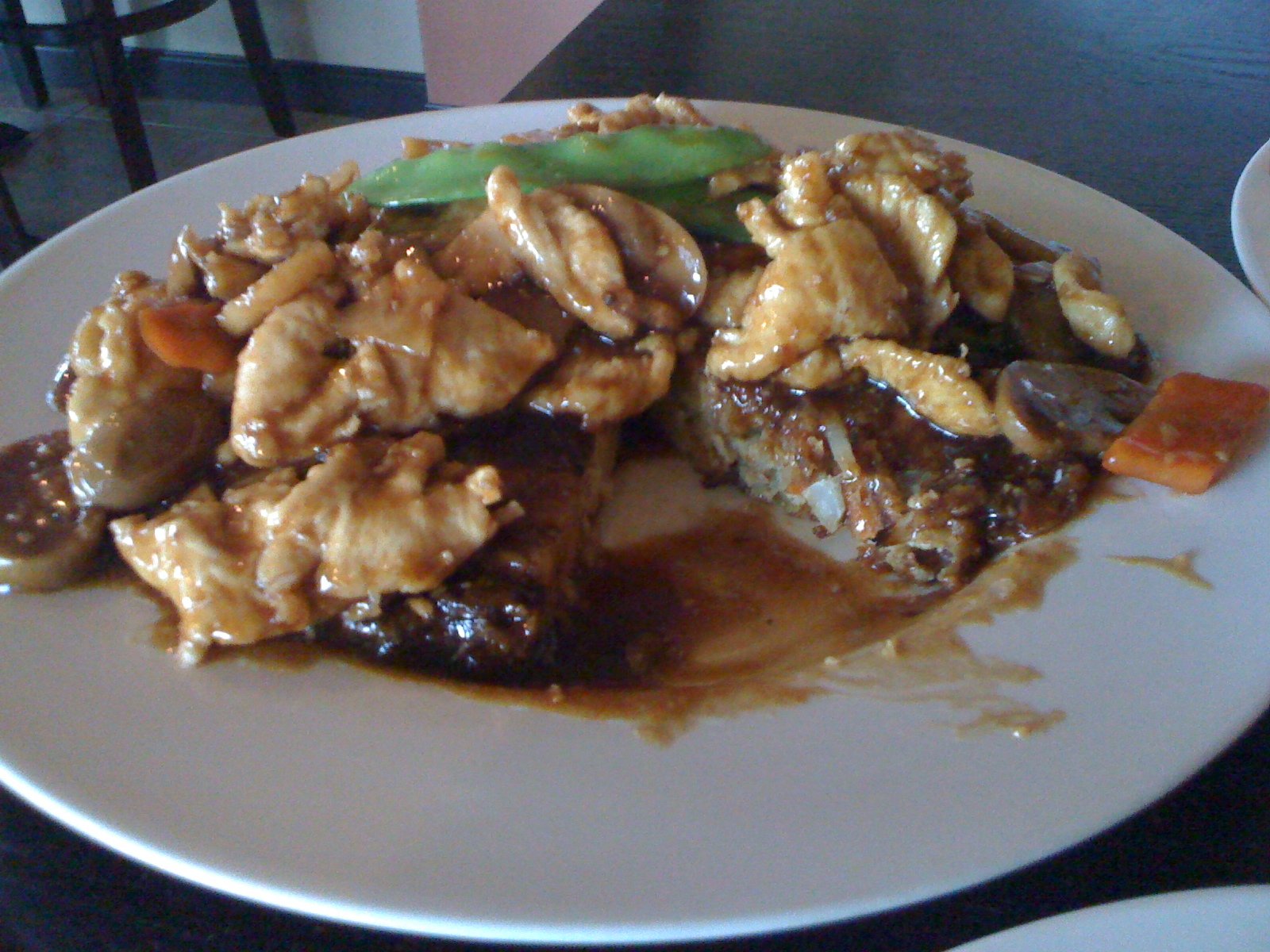 The hot spicy chicken ($4.95-all shrimp dishes are $1 more) wasn't too spicy, the sauce is smooth and has plentiful white meat stir fried with a thin crisp crust which lets the chicken stay juicy yet have a pleasant light crunch of a crust. This was with fried rice.