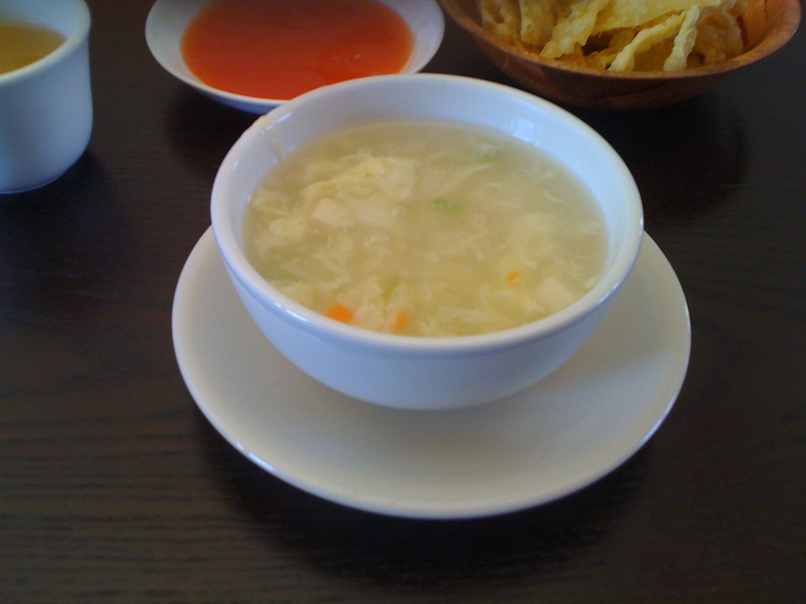 These come with a cup of soup and the requisite fried crispies and nuclear red colored sweet thick yet somehow tasting made from scratch dipping sauce.
