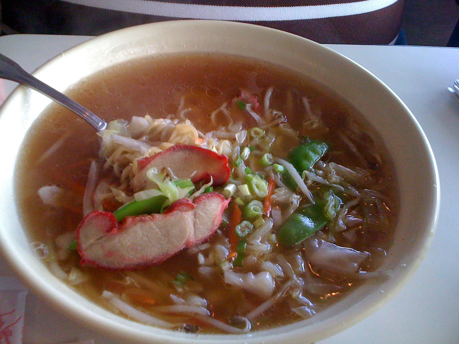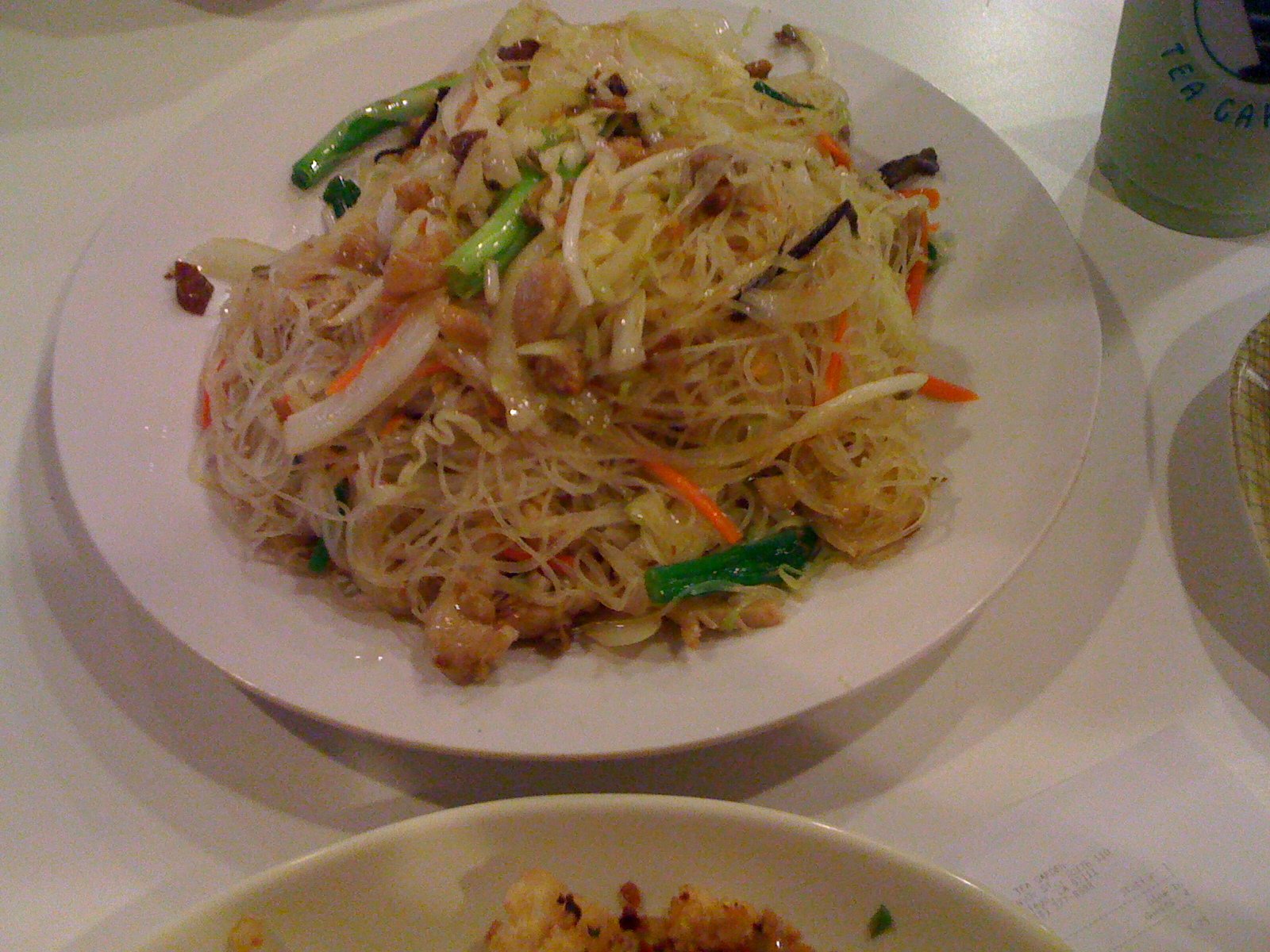 House Special fried rice noodle ($7.99). A wonderful smoky flavor infused in the thin noodles and perfectly sauteed shrimp, beef and chicken along with green onion tops, onions, carrots, sprouts and (I think) bamboo. Maybe it was a fungus. Those brown things…they had a woody texture and not much flavor. Lots of flavor in everything else.
