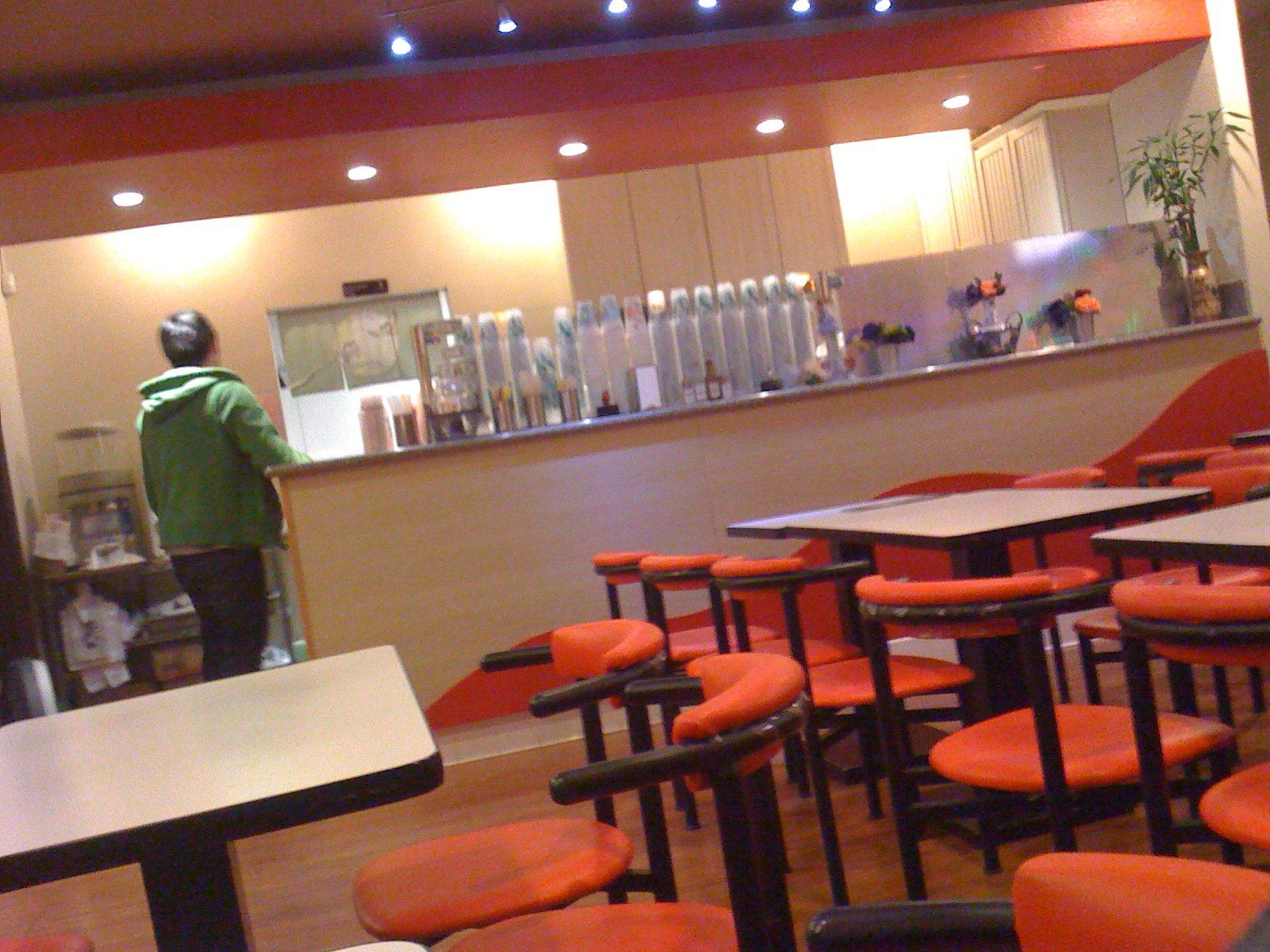 Deceptively small looking from the front, there is seating capacity for 57 inside. Of course, as is the rule for Convoy Street and its environs, parking availability does not correspond.You walk in and can grab a menu and sit on the couch next to the cash register, or just read the wall behind the register (that is just the beverage menu), or order a special straight from the whiteboard. Pay. Get a number. Find a seat. Free wifi, a shelf filled with board games, two televisions and nice surroundings.