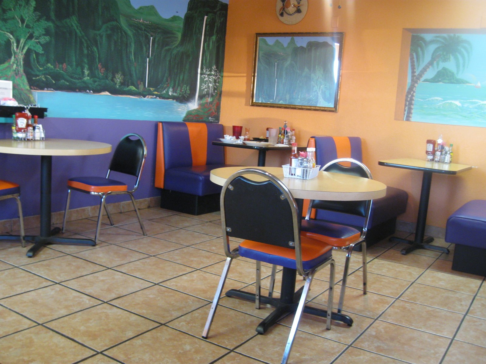 On our way back home, we'd decided to stop there. To be honest, Tina and I weren't expecting anything special, even though the purple and orange interior decorated with a mural of a famous natural wonder in Jalisco seem right to me: