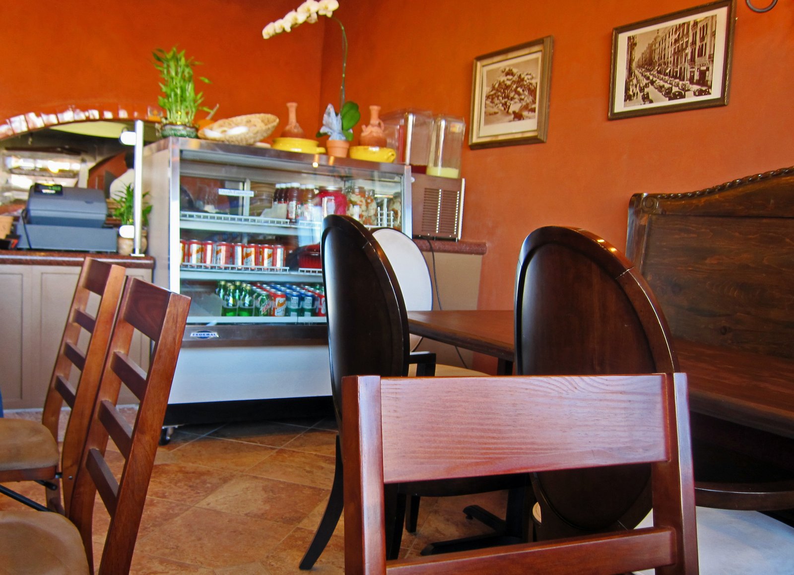 The interior of the shop is tiny, but full of warm colors, and there are wonderful fragrances coming from the oven made of refractory concrete in the back of the kitchen.