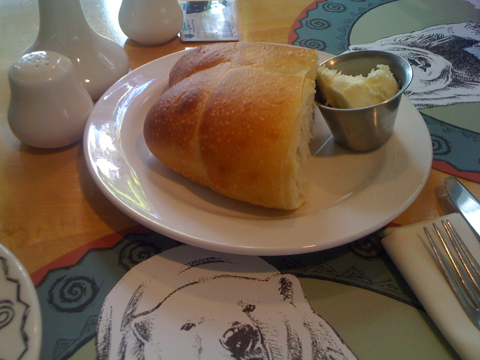 Warm, crispy crusted, mildly sour sourdough and whipped butter was brought out after we ordered.