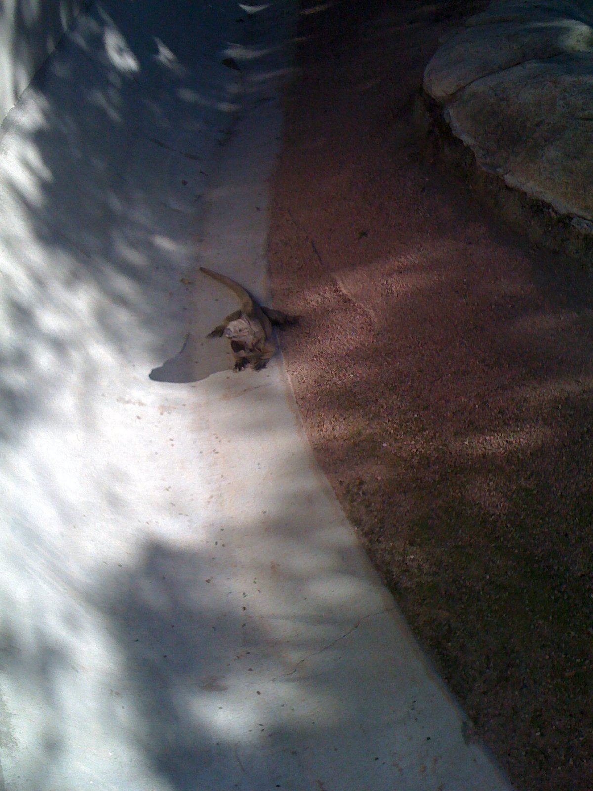 while they were eating lunch…and stared at the Monitor Lizard across the way…