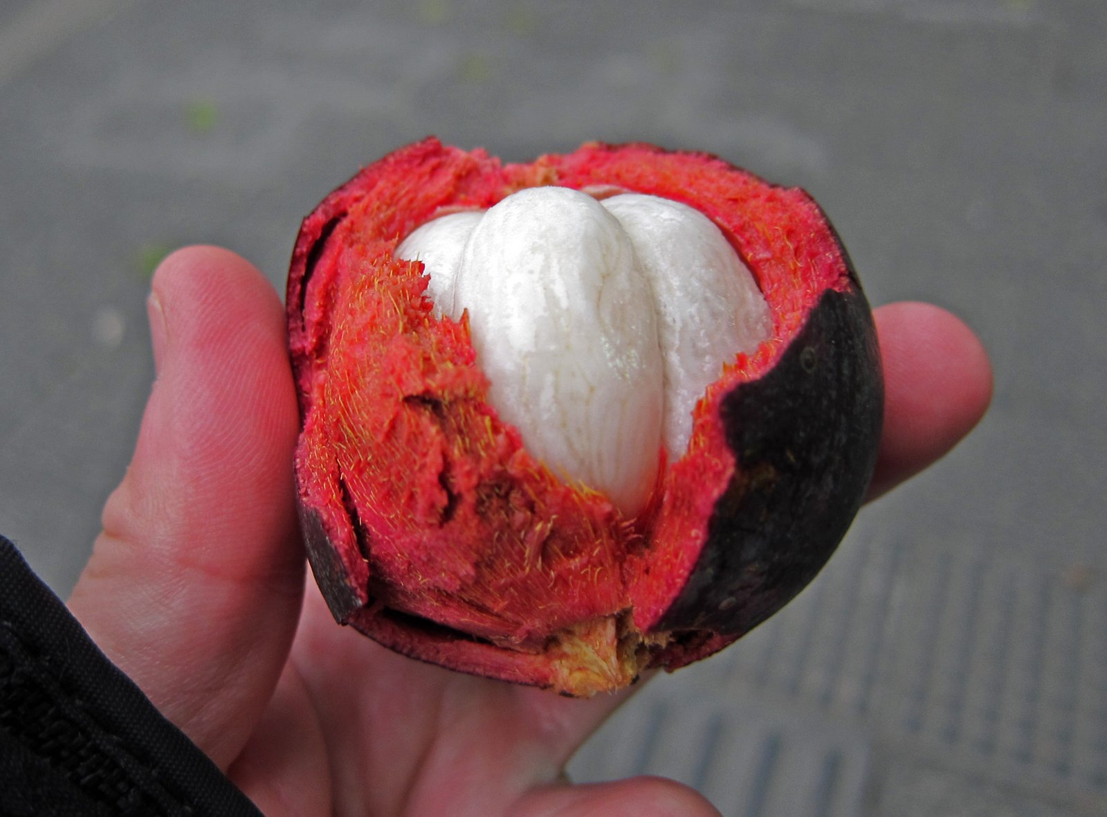 Must be living in the dark corner of Arizona, never heard of or seen mangosteen. I had to Google it to discover you only eat the white part. Google says it tastes like a peach.