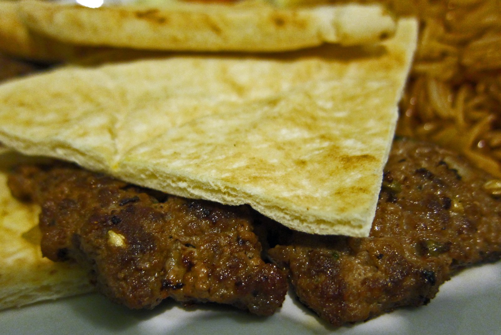 The Missus, shocked that I had actually eaten brown rice (something I've been cooking for Her for months), just had to check this place out. On our visit I told Her, "this may take a while, but you'll enjoy the food." She had the Lamb Tika Kabob and really enjoyed it. I tried one of my favorites, the Chapli Kabob, here it's very well seasoned ground beef patties ($6.99):