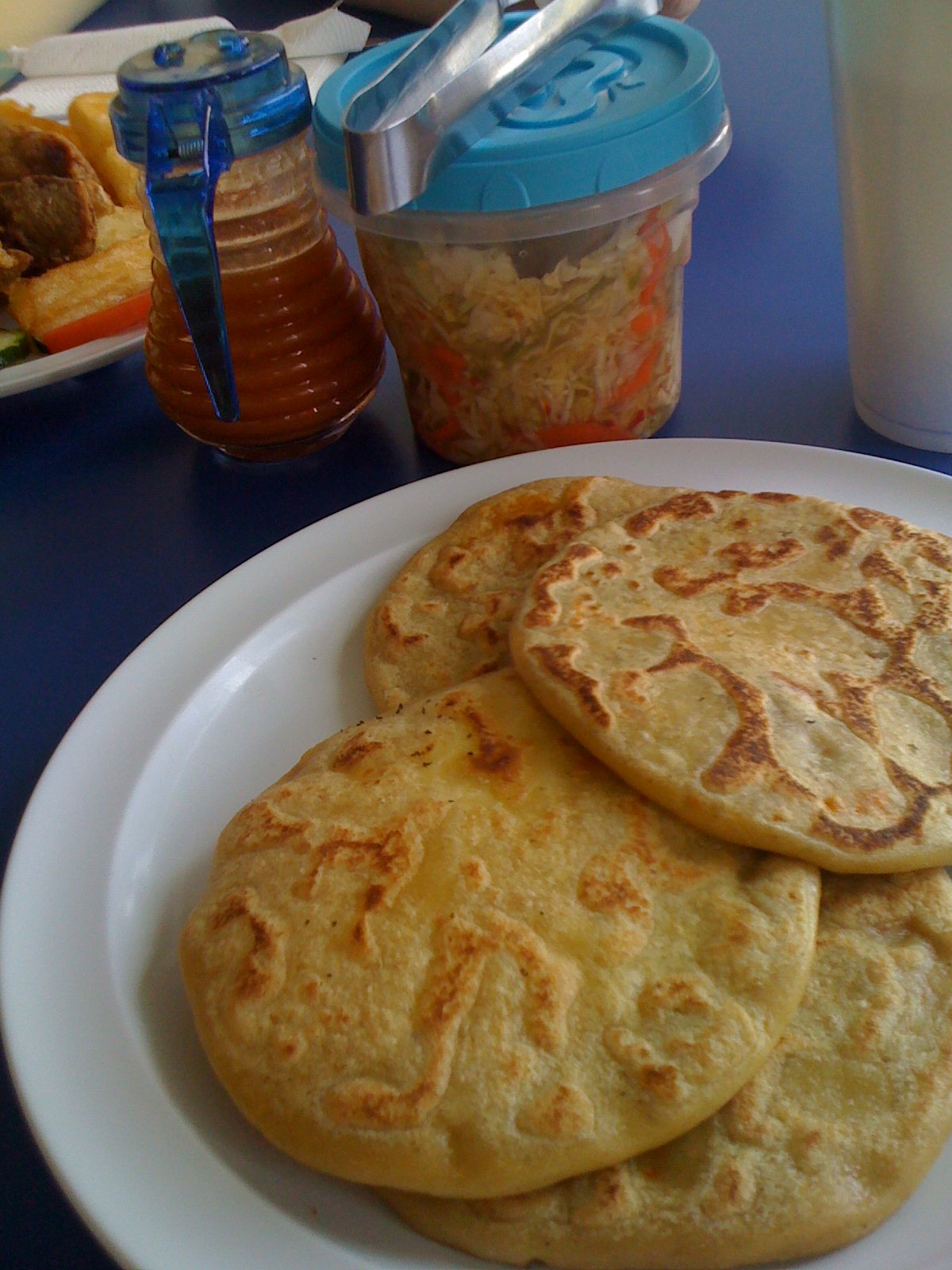 i love that they give you a little container of those pickled cabbage and what not….that’s a nice touch. i have not yet had the pleasure of having a pupusa yet….i always imagined it to be something different (like a big samosa), but that looks wonderful….when i come down, i will definitely have to try and find a place although with all the food blogs i read/all my cravings as a poor student…the list is neverending!