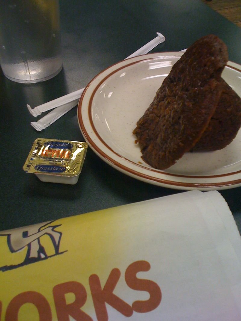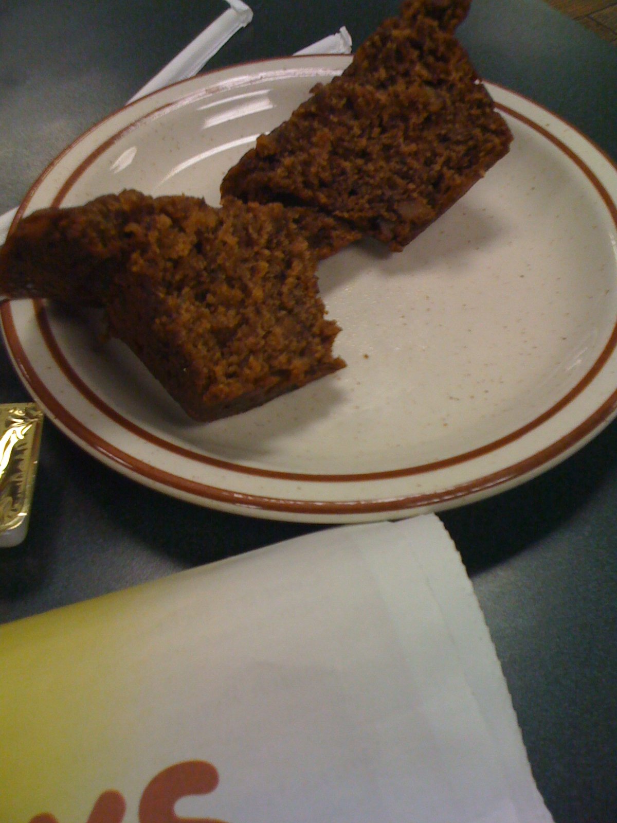 You get a choice of toast or home made banana nut muffin with your breakfast. The muffin comes out *hot* from the oven.