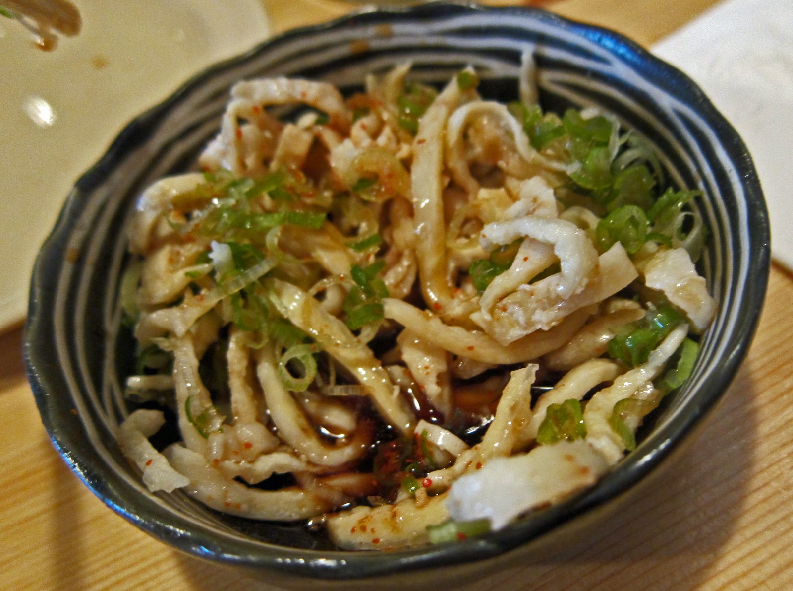 A must try item whenever I see it on the menu is Kawa Ponzu. Sliced chicken skin topped with sliced green onions and ponzu sauce.