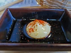 While it could be argued that the beef is lost under all of these flavors, I appreci ate the combination of textures.I also enjoy that the daikon is almost finely julienned rather than grated into pulp, this reduces the amount of astringency, while still adding a wonderful crunch. Ponzu, green onion, and daikon is a wonderful combination of flavors. And I believe that the beef toothsome yet not tough has had tare applied ot it, since I catch a bit of sweetness as well.