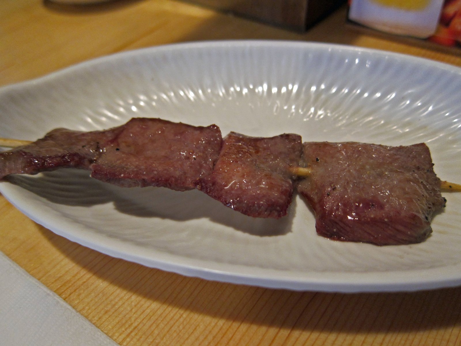 I know you're asking….well what about stuff from the Yakitori menu? First off, I appreciate the use of Binchotan, the fragrant, hot burning charcoal. So let's go down the list, beginning with Gyu-tan, beef tongue: