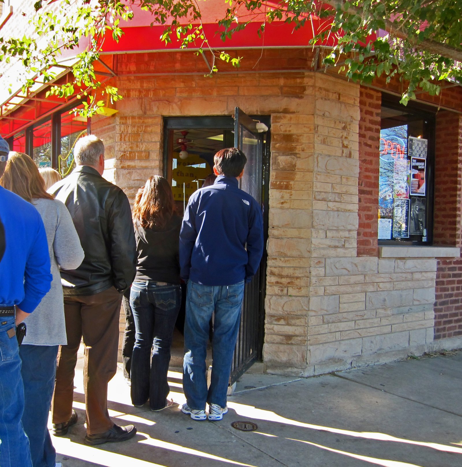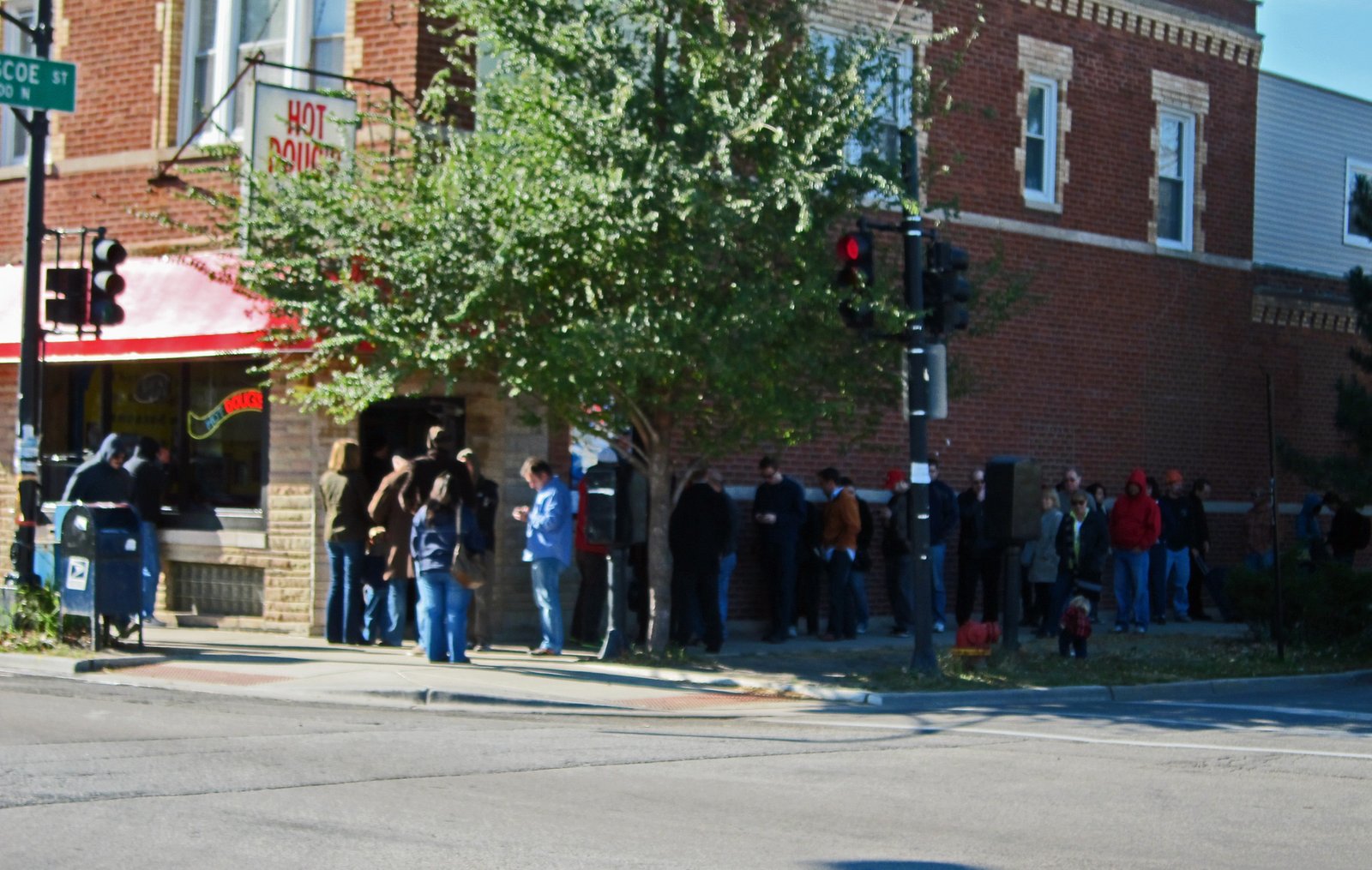 Stepping into line and overhearing conversations, it seemed that at least half the crowd were not from Chicago. As for the line, a suited gentleman in front of me, who had a page from a legal pad full of "orders" told the couple in back of him that, "this is nothing….it seems to be a pretty slow day."