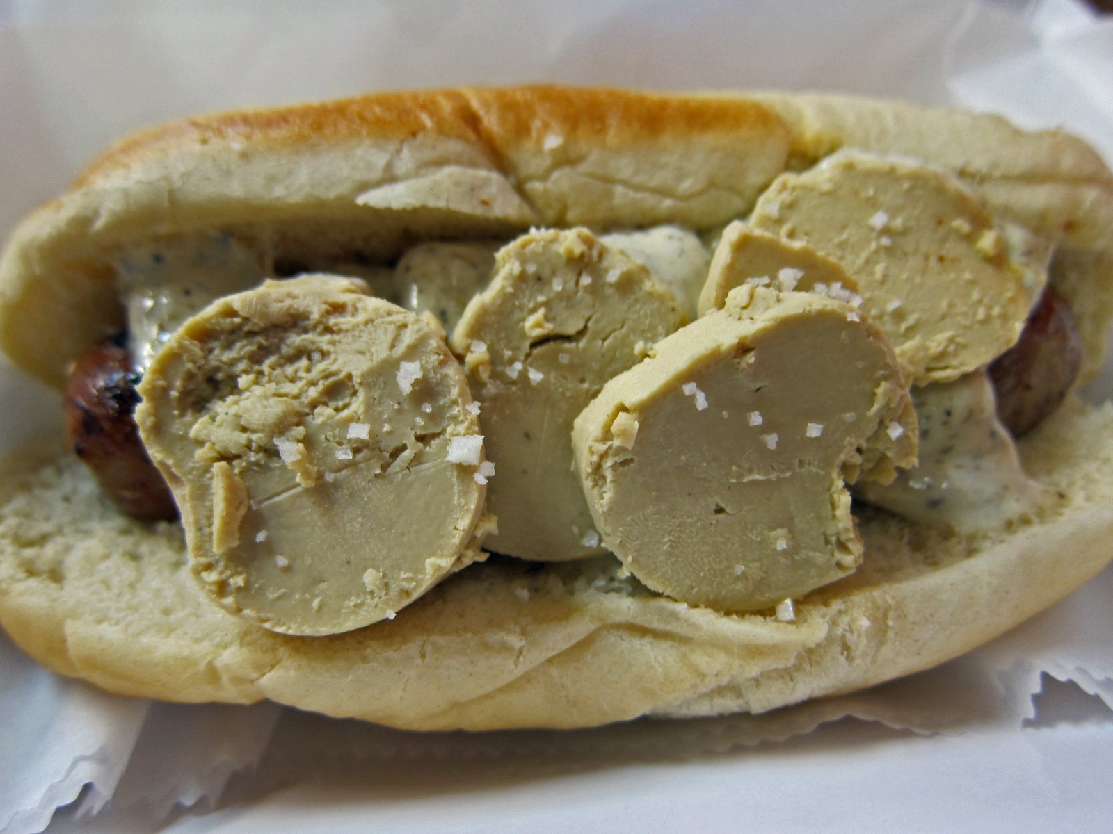 I thought that perhaps the truffle aioli would just overpower everything; but this was wonderfully rich… decadent…..I felt like I needed a shower afterwards. The sausage with its mild sweetness was no slouch, and the Foie Gras Mousse with a light sprinkle of sea salt. was pure fatty joy.