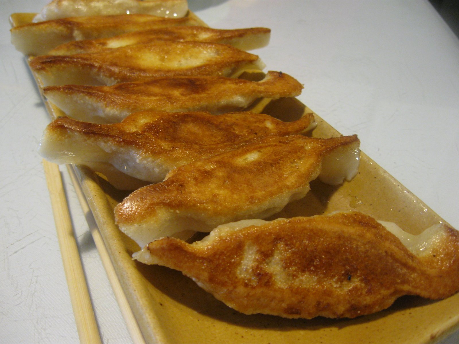 After we received a complimentary pot of tea, the next thing that arrived on our table was an order of potstickers:
