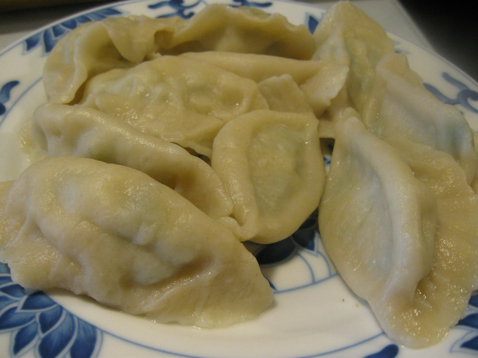 They certainly looked right. But I found them slightly disappointing. The mild filling was okay, certainly, but the flavor was not memorable in any way. The moderately thick wrappers seemed slightly understeamed and gummy on the top half and slightly overdone and cardboardy on the bottom. Not terrible, but far from the best potstickers I have eaten.