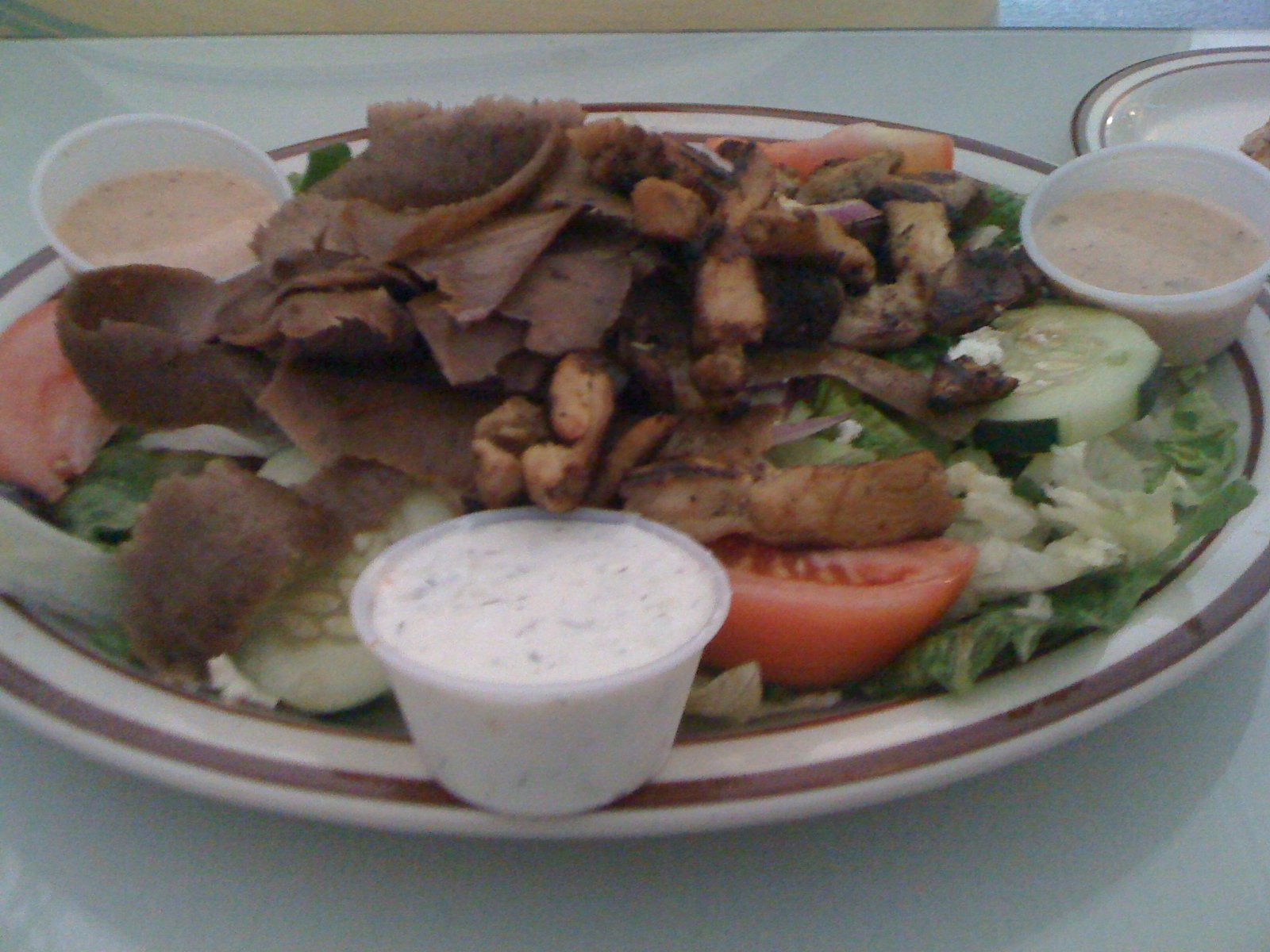 The Greek salad was made of mixed greens, tomatoes, cucumbers, green peppers,onions, olives, Feta Cheese and a home made Greek dressing which did not overwhelm the flavors of anything. The gyros and chicken were fresh grilled, still warm and very complimentary.
