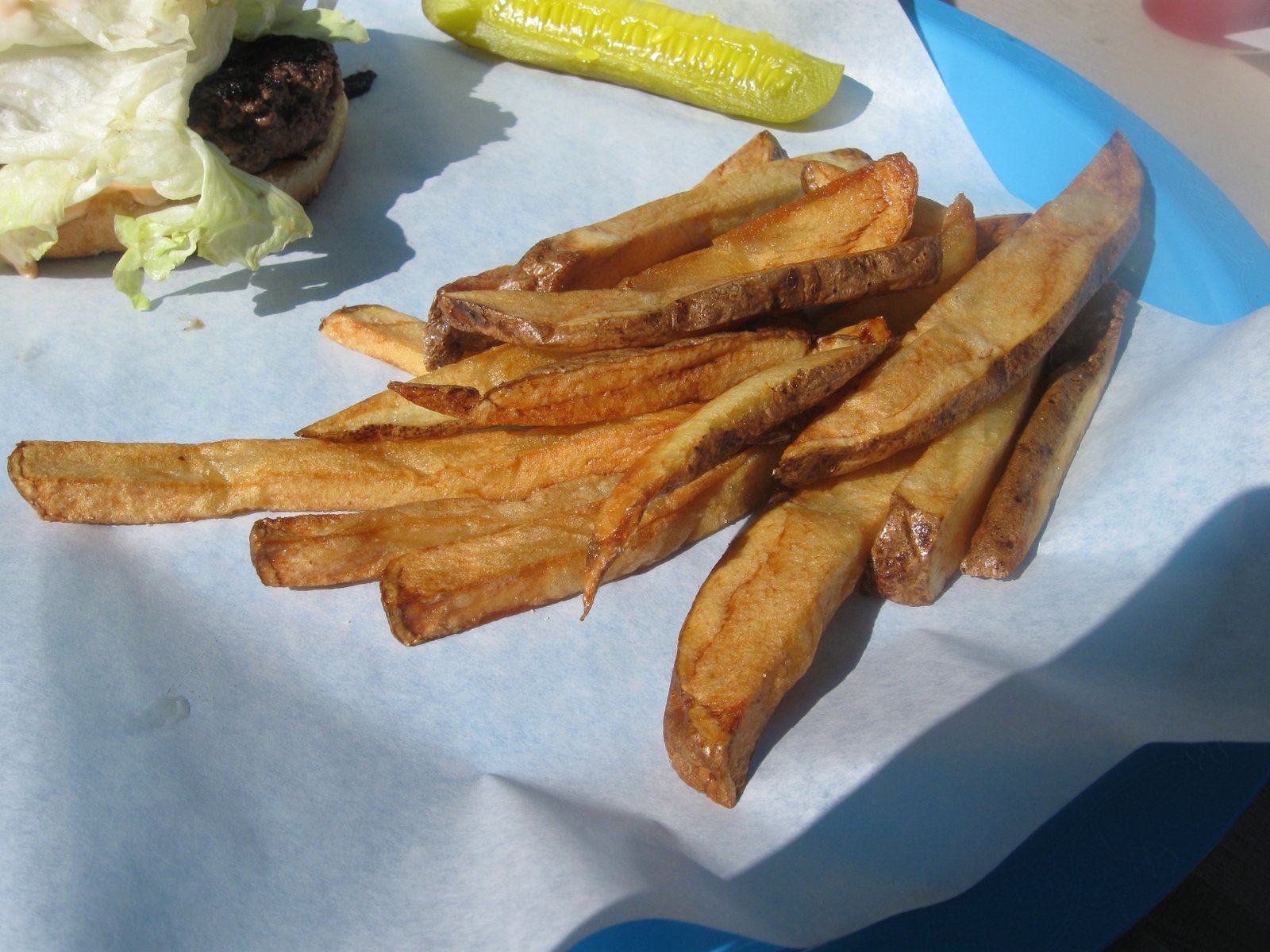 The sesame seed bun held a handmade patty that had to weigh at least a half pound. One bite and I was in protein paradise. I cannot recall a more intense burger in my life. The whole thing screamed BEEF as loud as it could! The char from the grill and the sauce (mayo with hint of ketchup, I think), just made the flavor of the patty that much better and more intense.