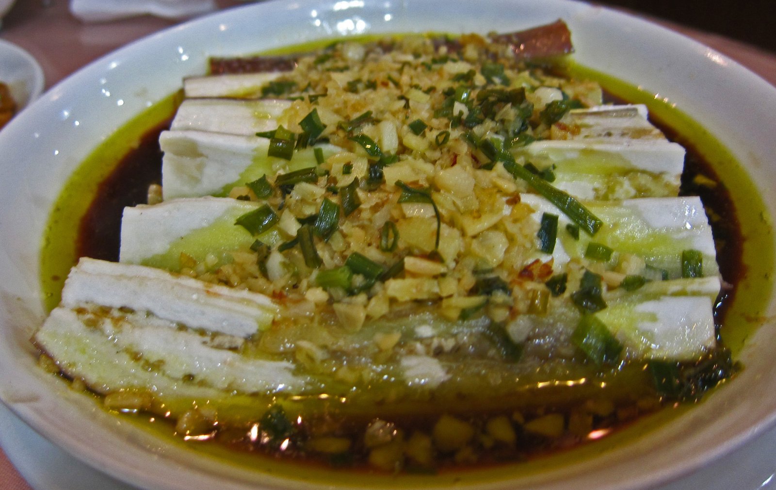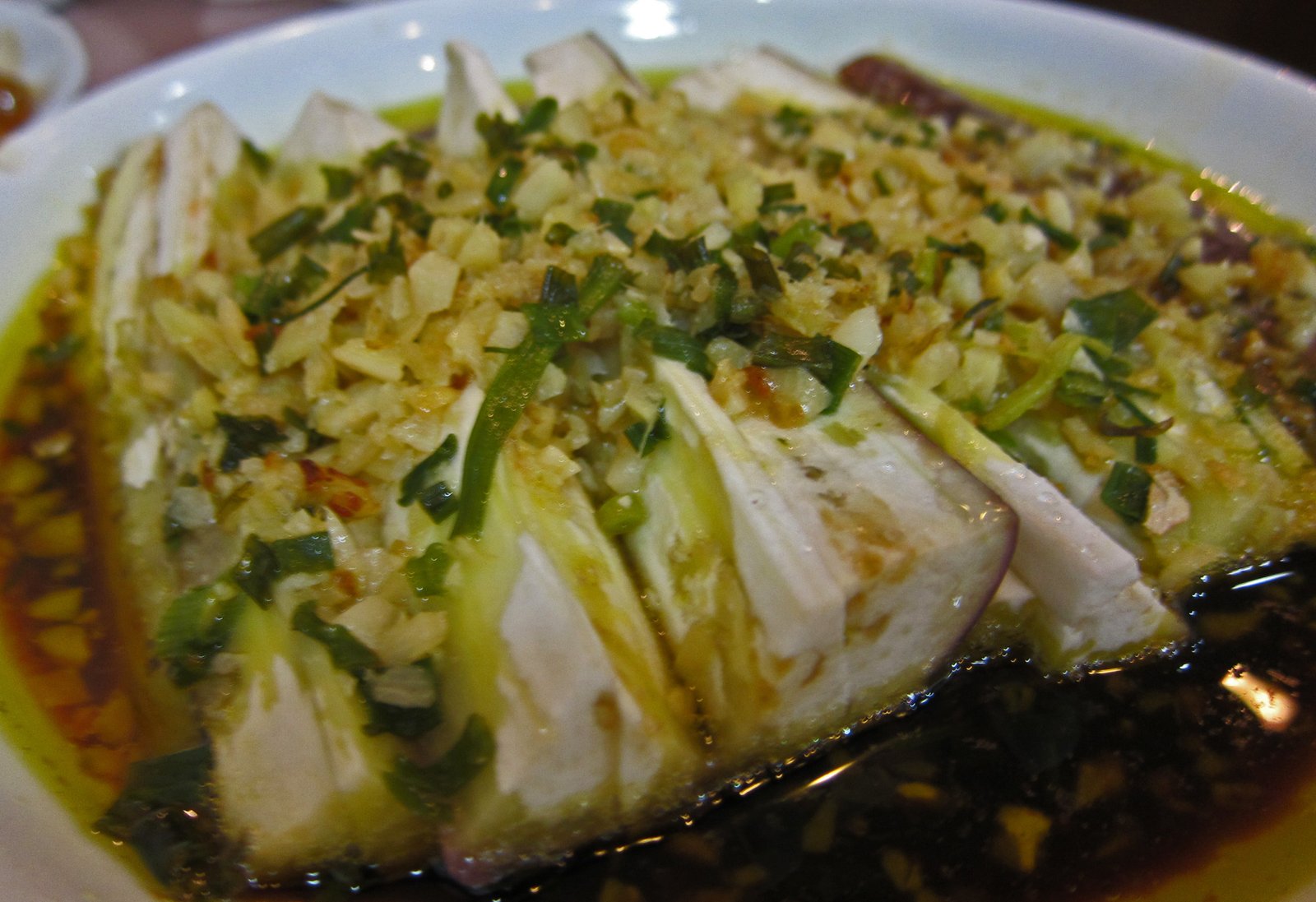 Vacation 2010 02 630The final dish was steamed eggplant with garlic. I had expected something closer to this(without the chilies of course). But the sauce was pretty bland, and the eggplant wasn't completely steamed, and in fact had a raw texture and taste.