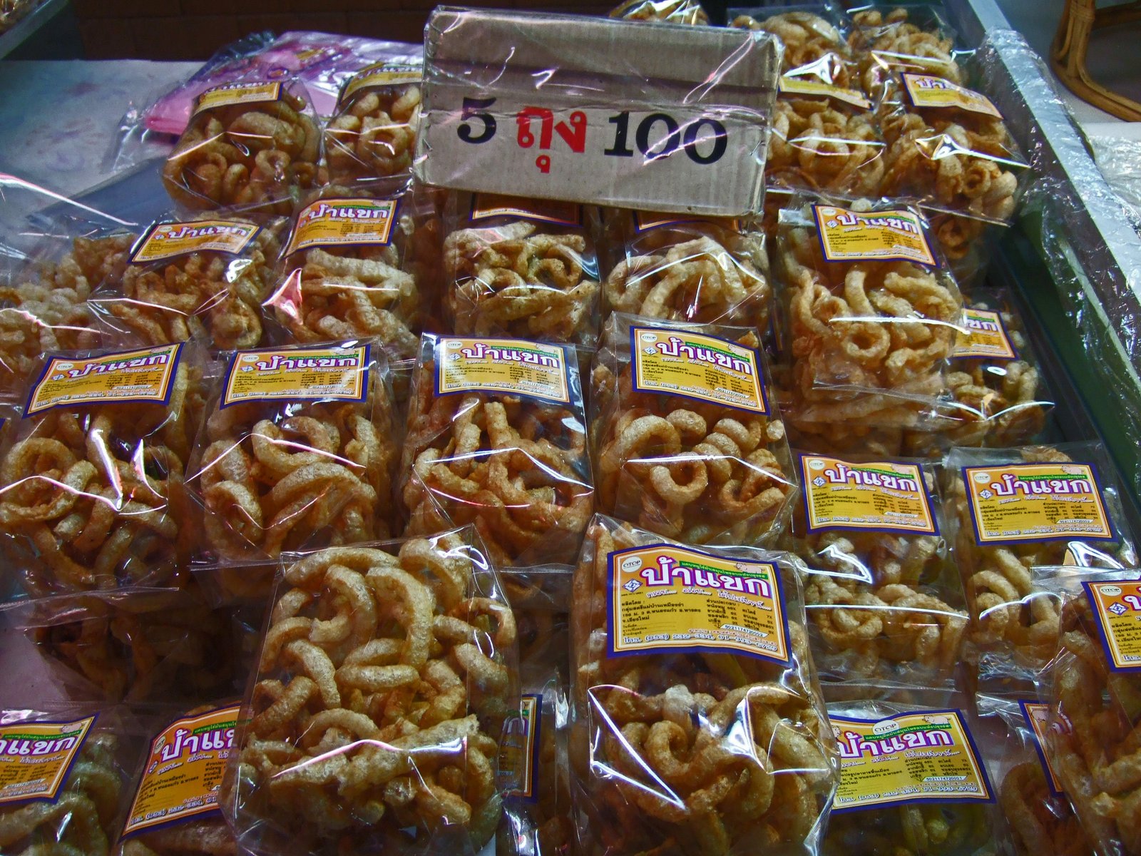The Kaep Moo (Deep fried pork rinds) really smelled like heaven to me….. so we ended up buying two bags, which we ate a bit later on…..