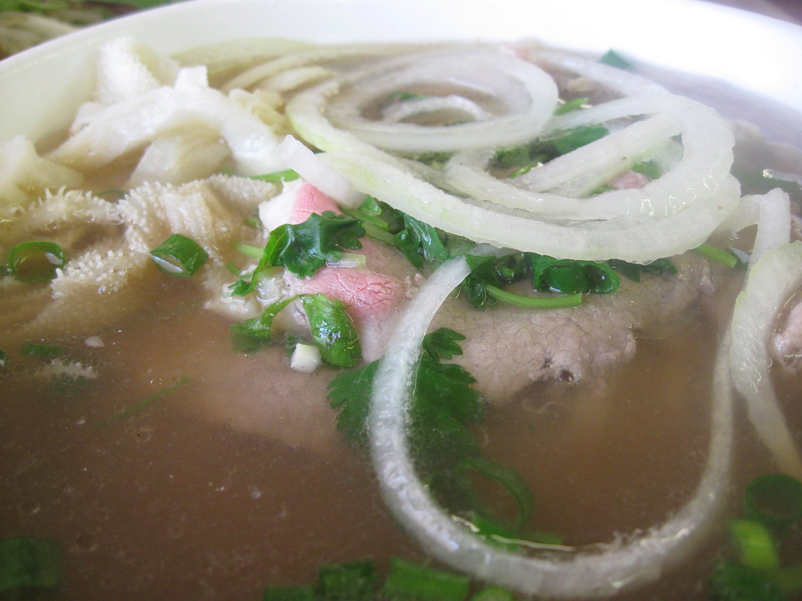 Unlike the bun bo hue, this soup had very little tendon and not much brisket. On the other hand, it was full of crunchy tripe and had remarkably flavorful rare steak: