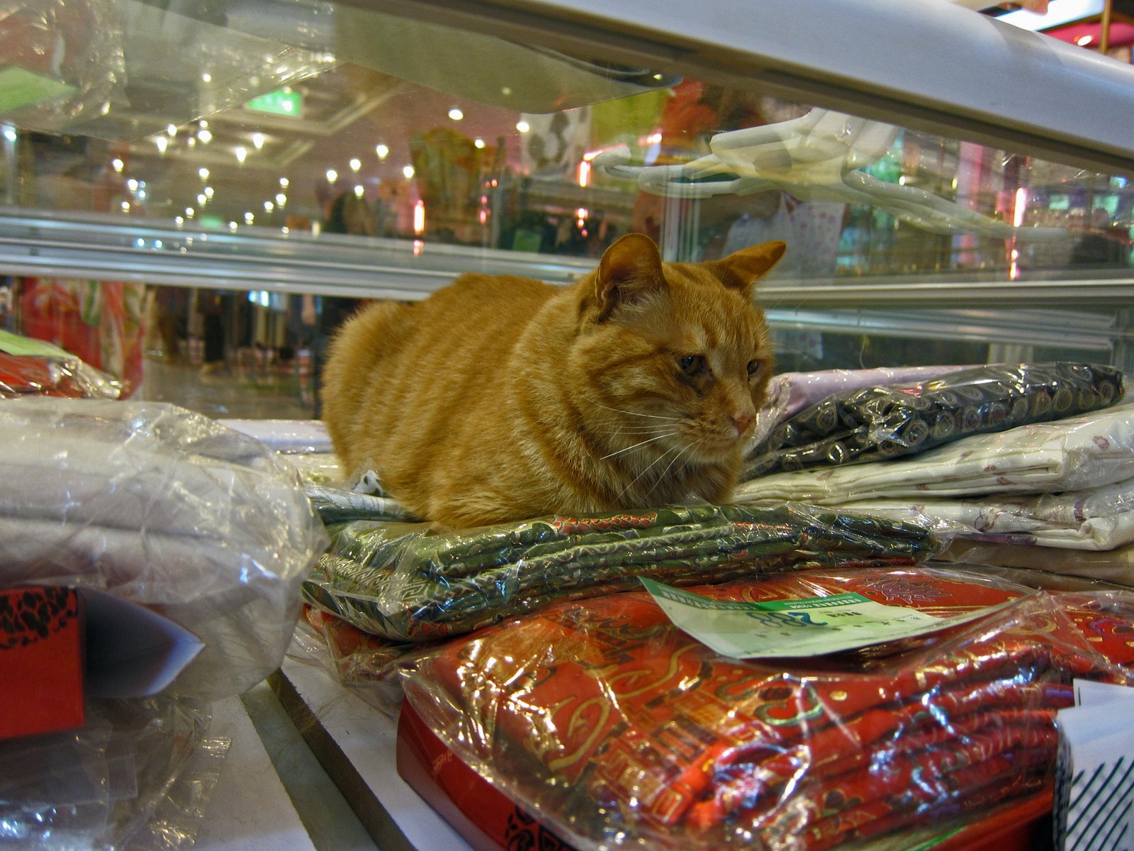 I thought "what a neat stuffed animal"! Until it moved!!!! And holy smoke it was a live cat just chillin' lying inside the glass case…..