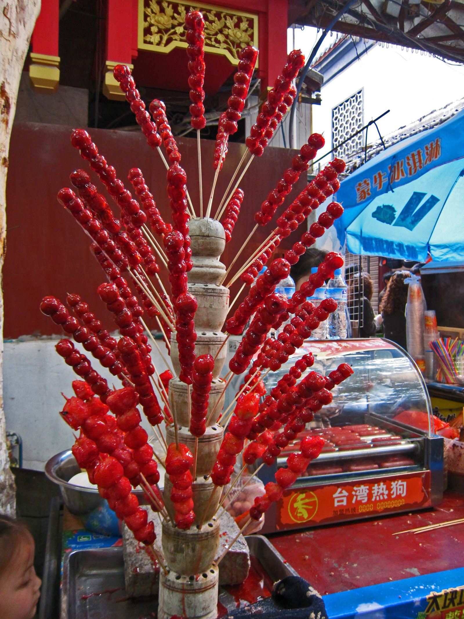 That's when the Missus saw the Tanghulu (冰糖葫芦), candied Haw. This was a childhood favorite of the Missus, so She just had to get it; even though it wasn't the right season for this (it's a winter snack). Unfortunately, this didn't live up to Her memories.