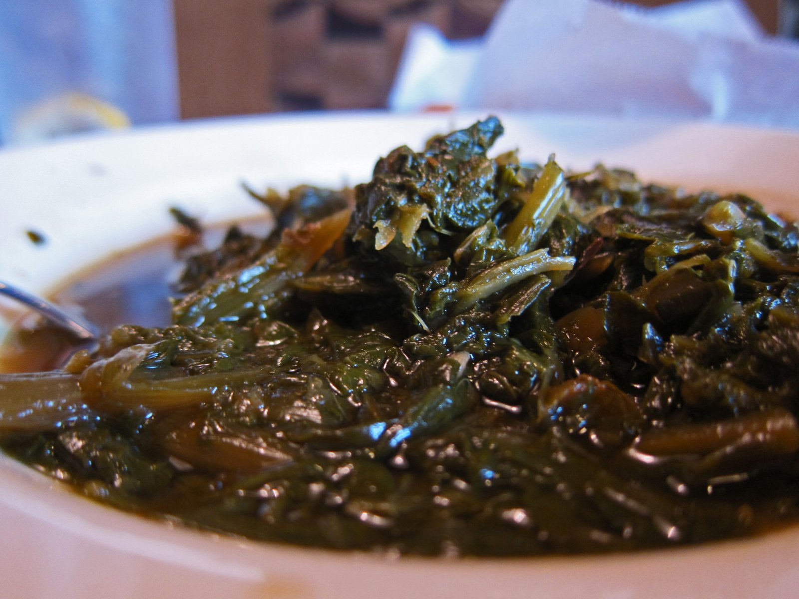 Again, this wasn't bad, it was a portioned very generously. But I prefer my greens a bit less mushy, these were a little too over done for my taste, closer to creamed spinach than the kind of greens I got used to eating in Georgia and other places down South. There was a ton of "liquor" which was again too salty for me, and lacking in the light smokey flavor I love in greens.