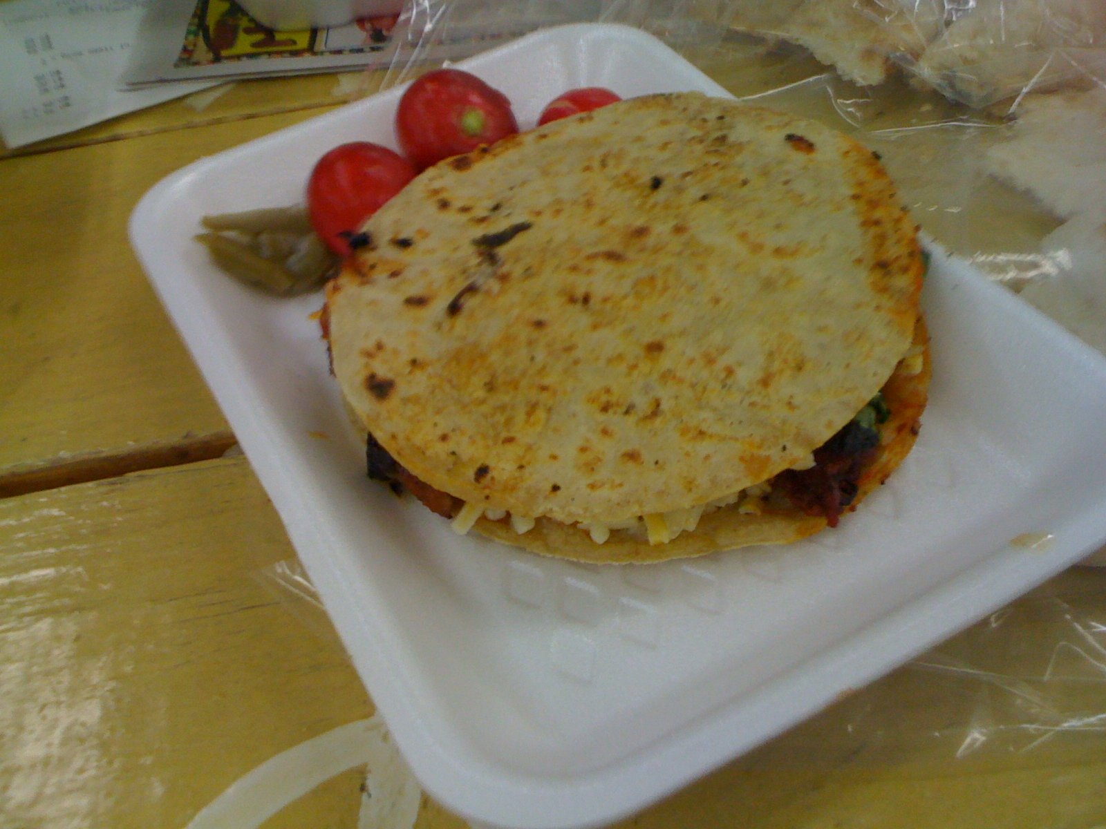 Here is a photo of a carnitas quesedilla ($2) to show you the size perspective, as well as a flour tortilla…The quesedilla is very stringy melty cheesy…