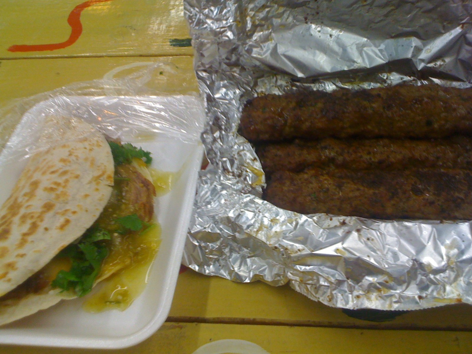 Mulita ($2). Two corn tortillas, each with melted cheese surrounding (in this case) al pastor beef. You can choose the meat for this quesedilla on steroids…excellent, filling, fresh. Worth it. Of course, beef made in the al-pastor style is cooked on a spit…