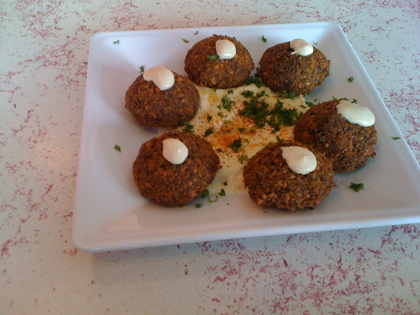 We started with a falafel appetizer ($5.95) (the online menu has changed). These were good. Now that I have had 'real' falafel, made with fresh (not powdered) chickpeas, I look for something superior to the falafel I consider to be the best. The falafel here come in second; I have to do more research. Falafel here are light on the interior, with a good garlic and parsley flavor, light yet crispy fried exterior and not greasy. Served with the fresh (lemony-light garlic) hummus on the plate, I have no complaints.